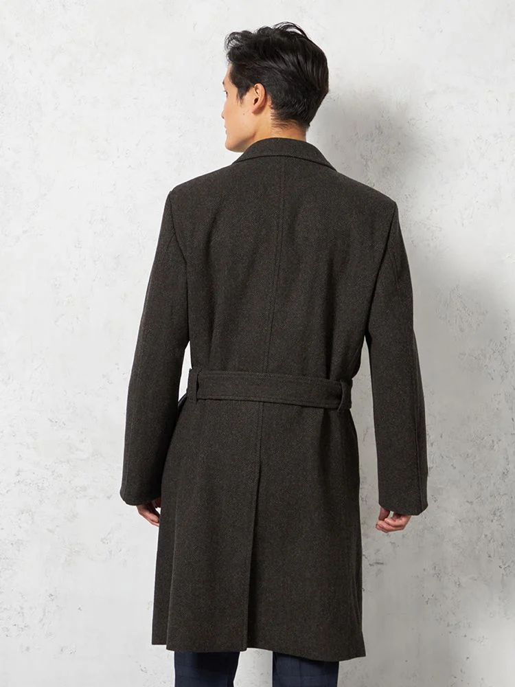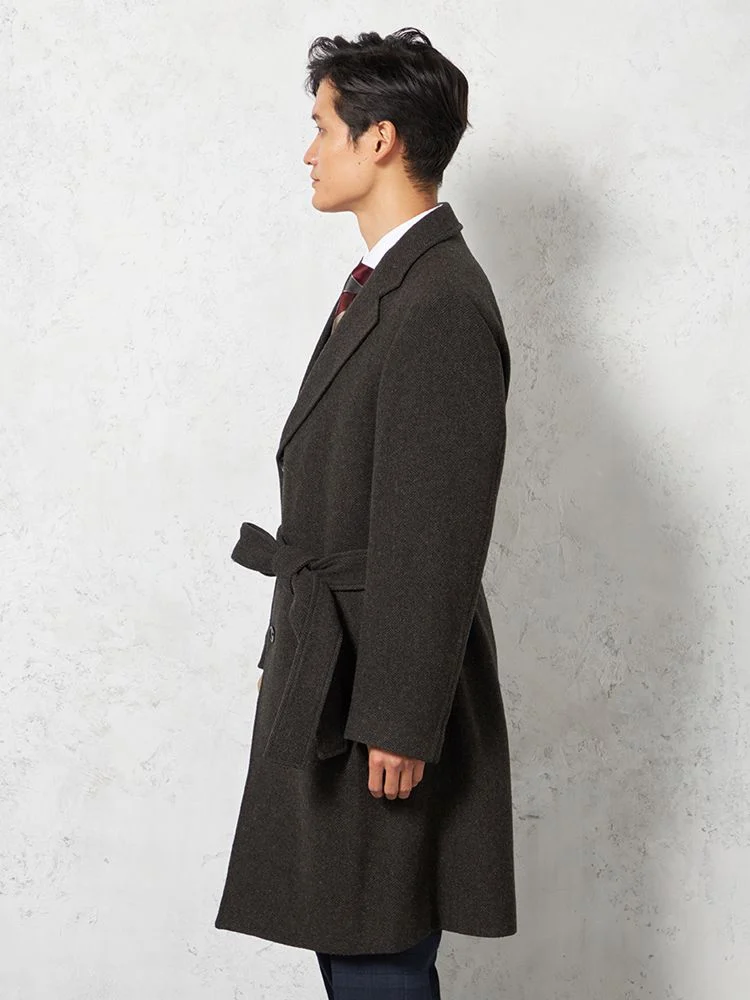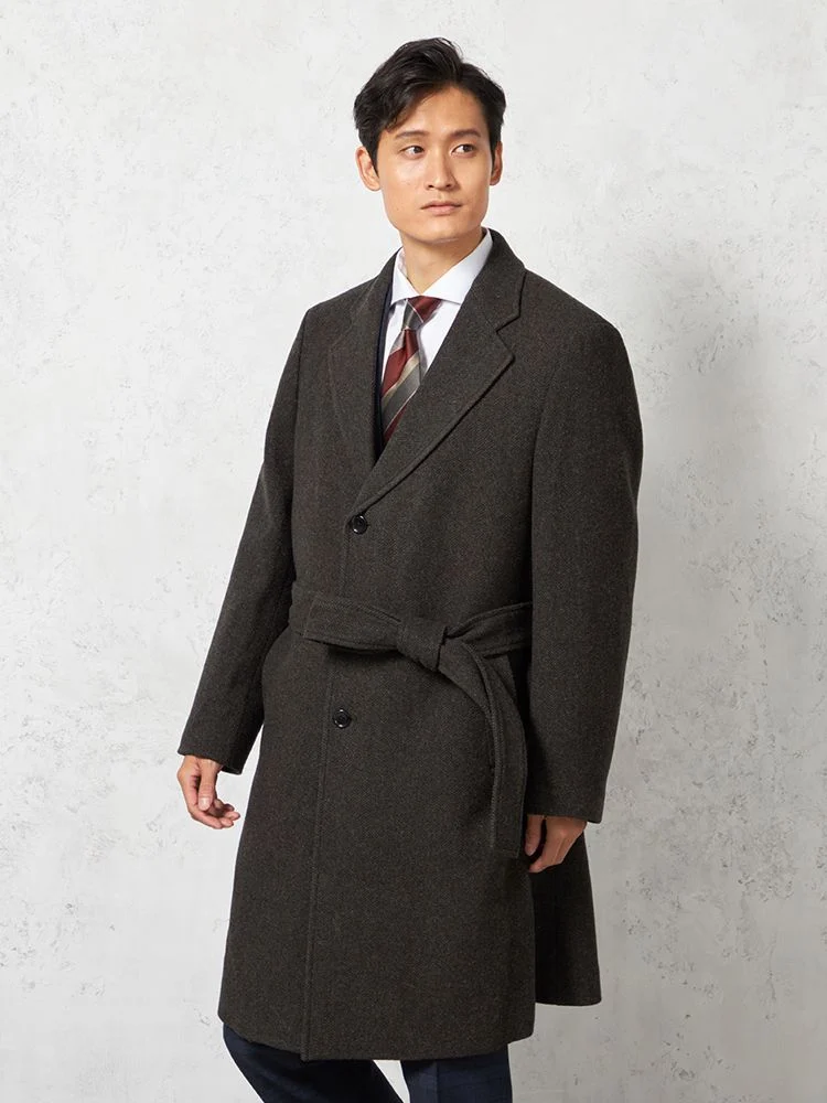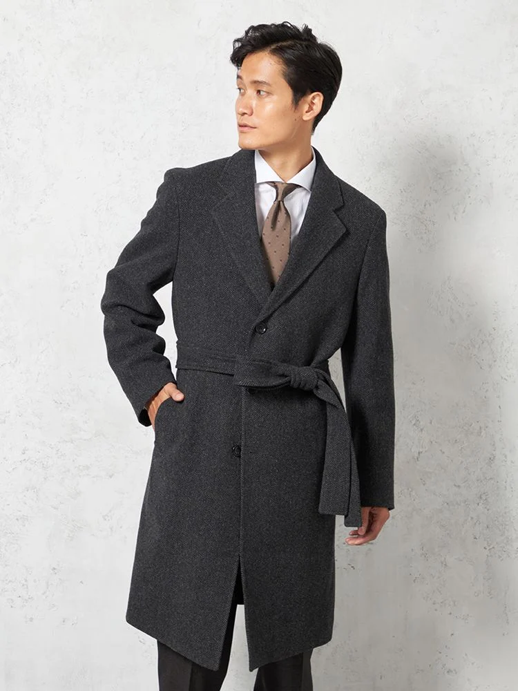 【ウール100%】クラシックベルテッドウールコート ベルト付き ヘリンボン nero 秋冬(C.グレー)