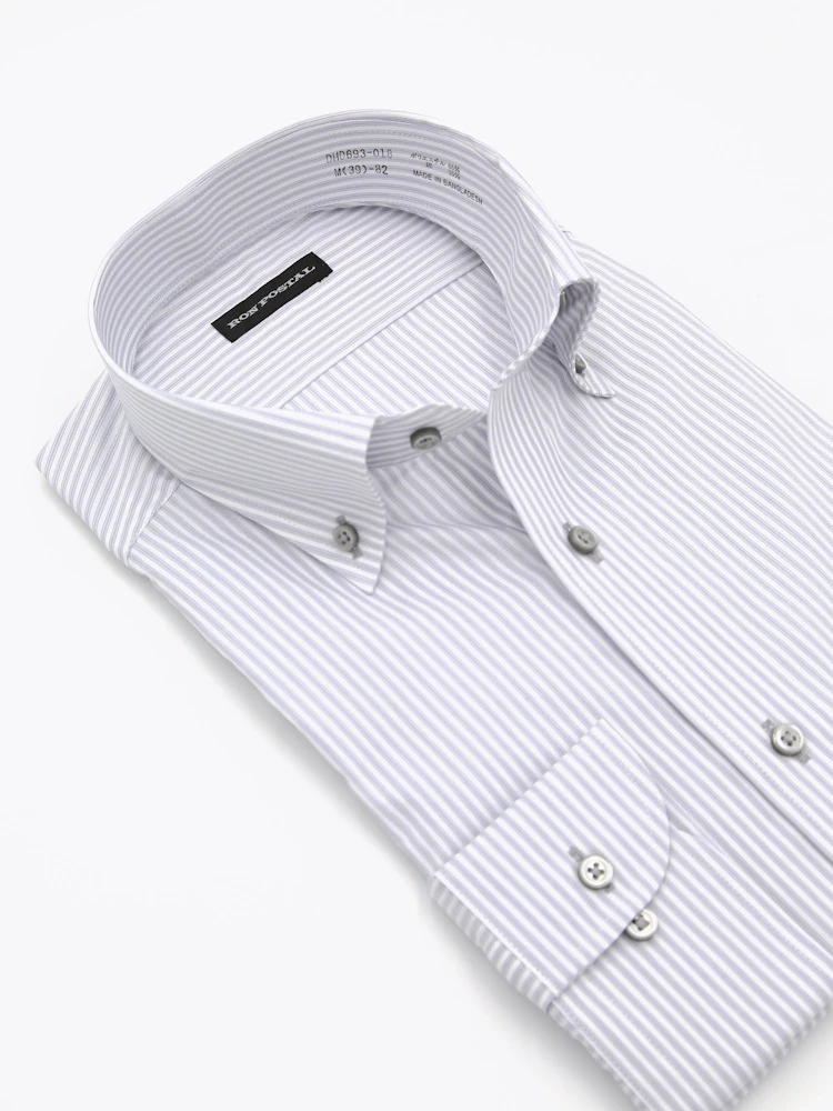 【形態安定】長袖ワイシャツボタンダウン【コットンプレミアムケア】ストライプリッケンバッカー通年