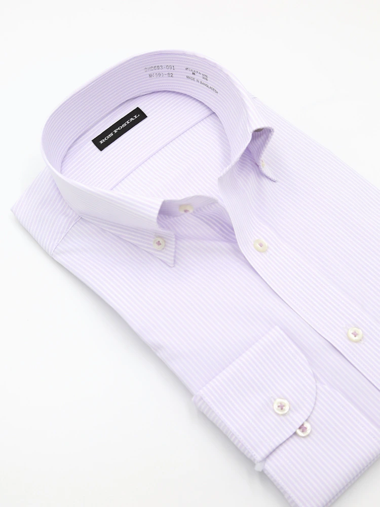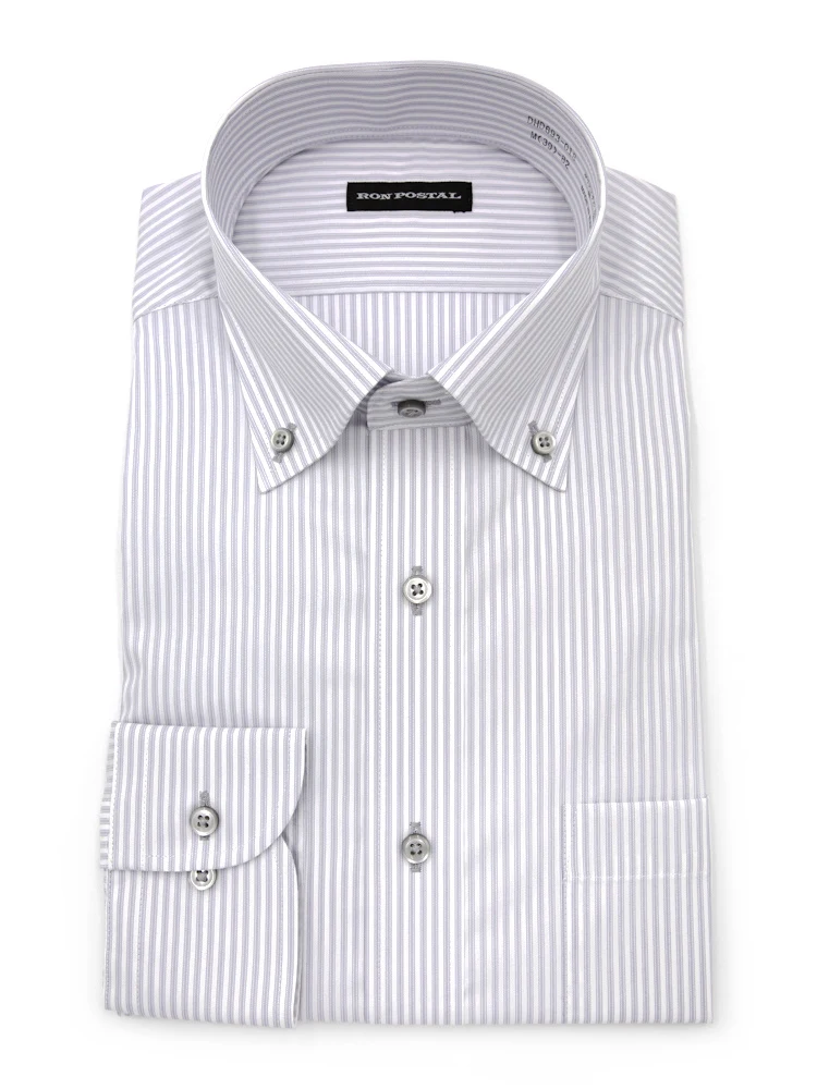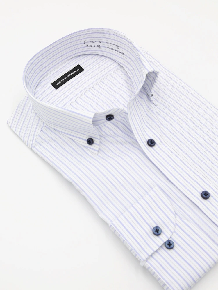 【形態安定】長袖 ワイシャツ ボタンダウン イージーケア ストライプ RON POSTAL 通年(S.ブルー)