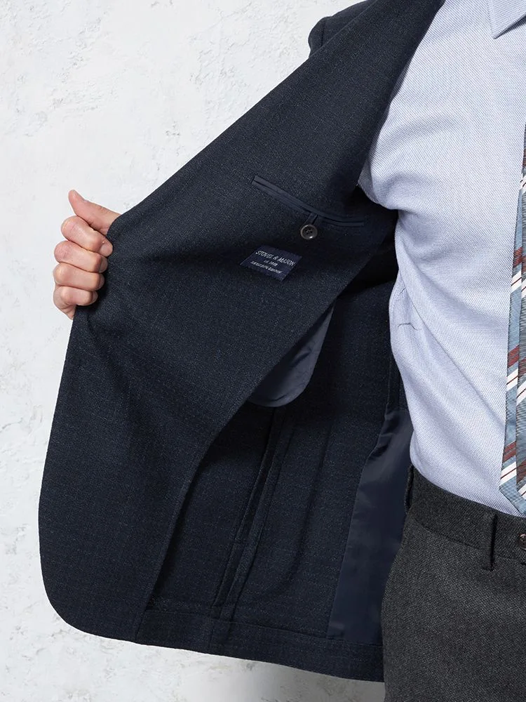 【ストレッチ】ジャケット2つボタンTOLLEGNO社生地使用キュプラ裏地グレンチェックS&MBLUELABEL