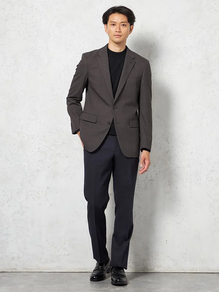 2つボタンのデザインで、クラシックなスタイルを演出。落ち着きと品のあるアイテムです。