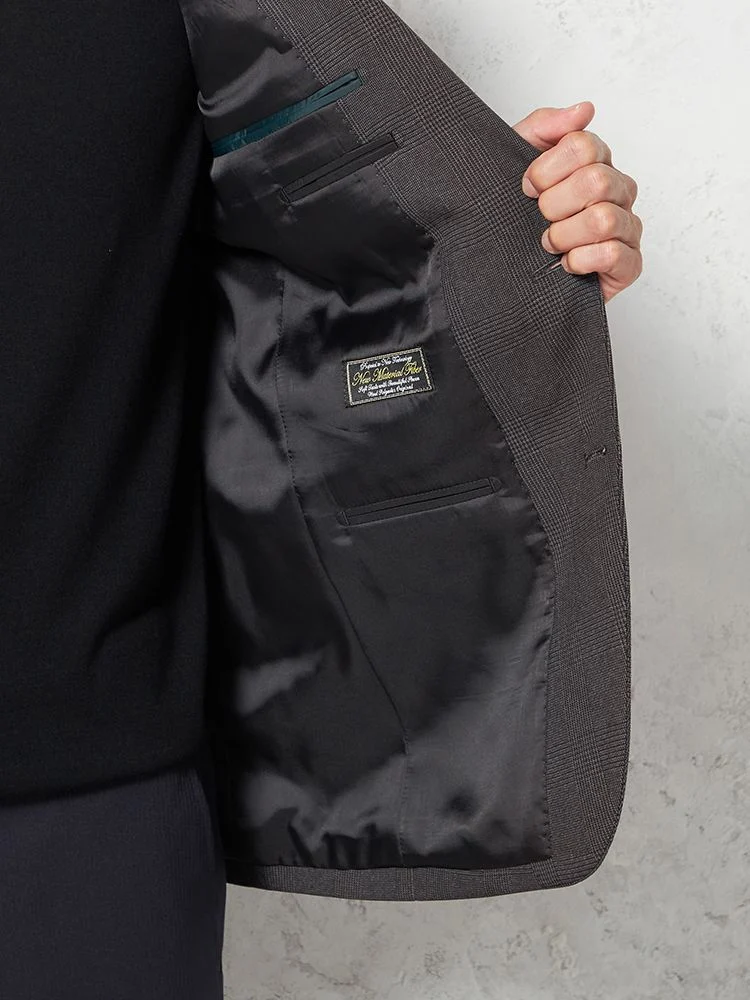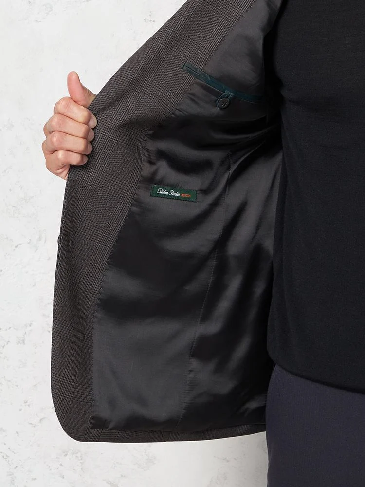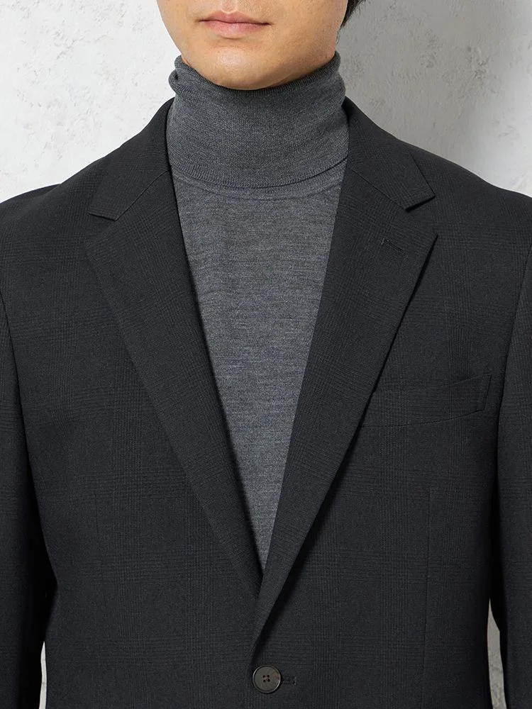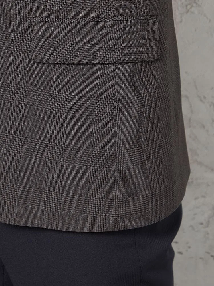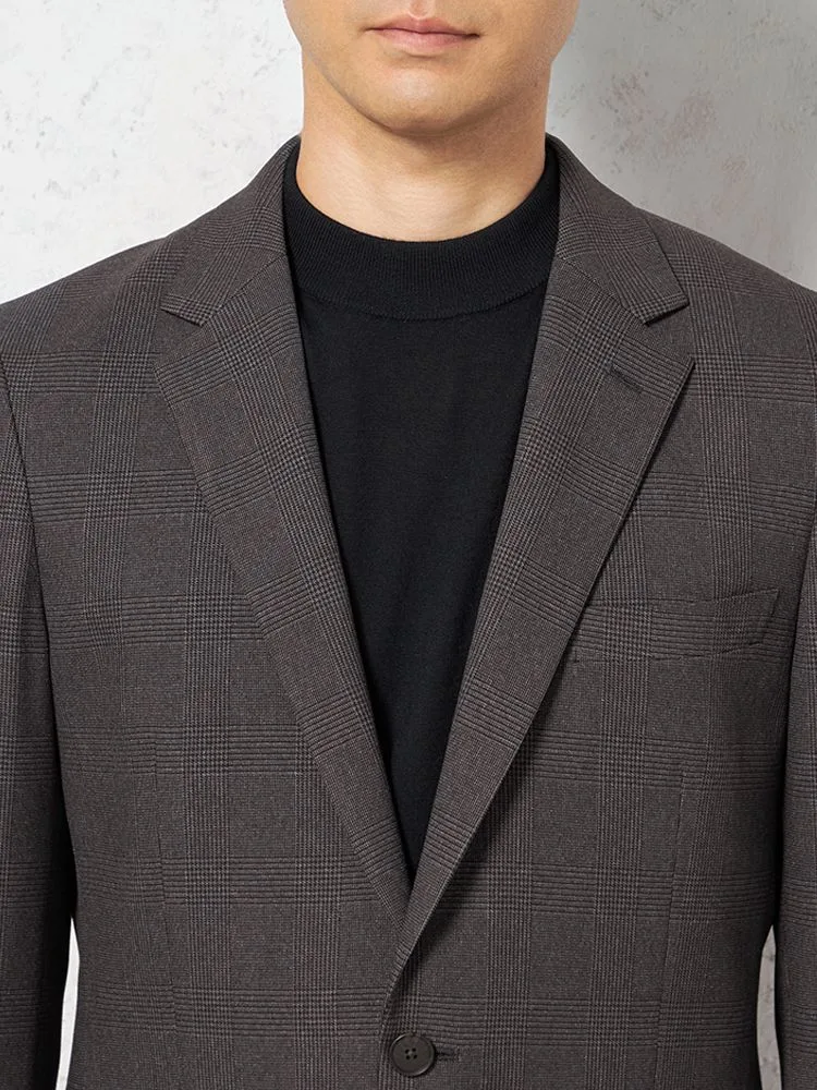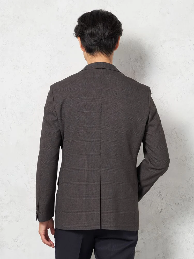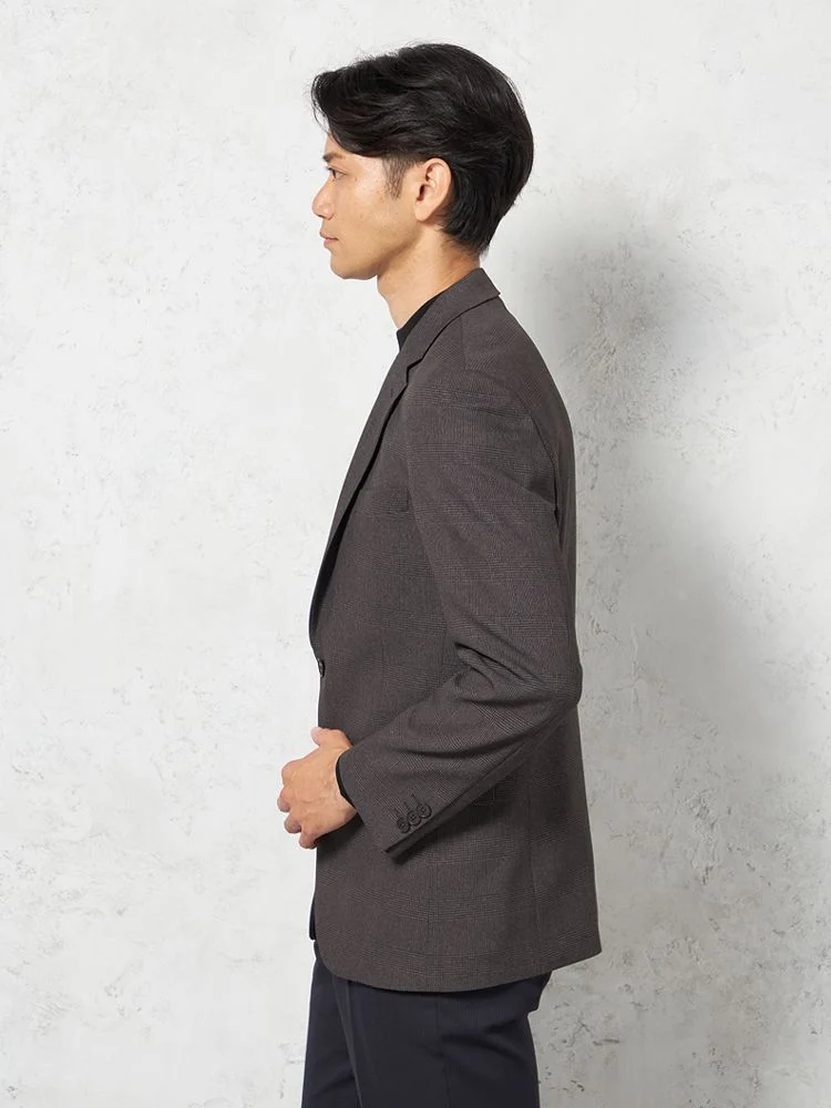 単色ながらもクラシカルな雰囲気で楽しめるグレンチェック柄のシングルジャケット。