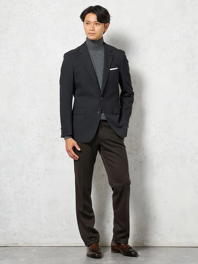 切り込みが1本のセンターベントデザインです。細身でスッキリとしたシルエットが特徴で、快適な着心地を提供します