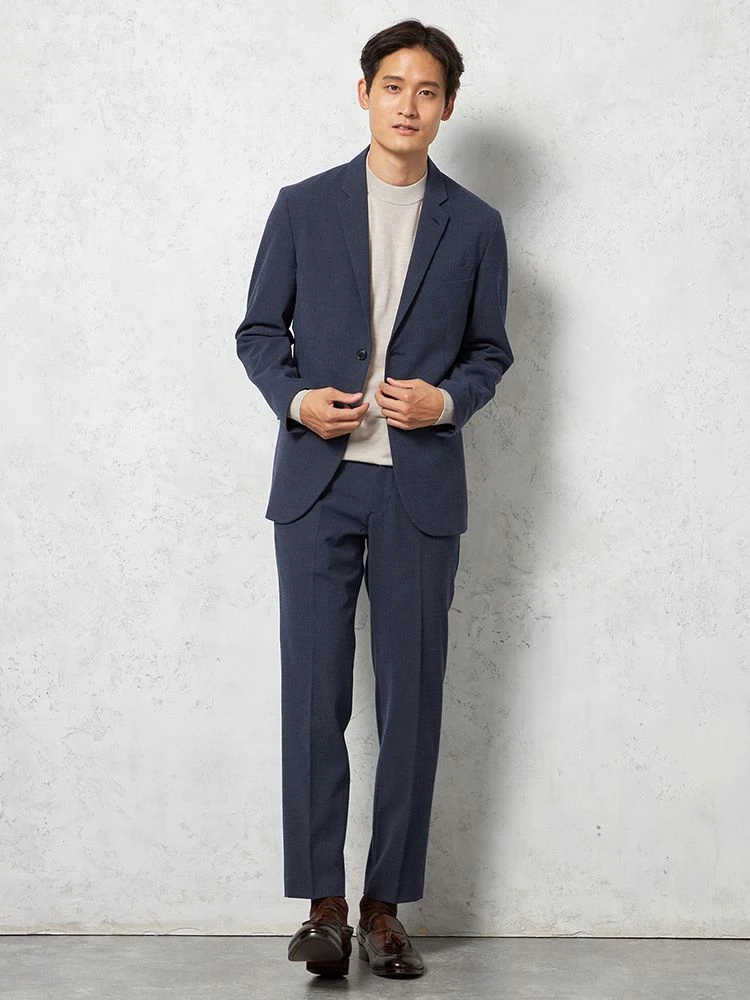 同じ生地で仕上げたジャケットと合わせれば、セットアップの完成です。