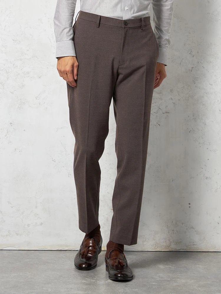 【ウォッシャブル】パンツ デレガント素材 ストレッチ グレンチェック TOKYO RUN 秋冬(ブラウン)