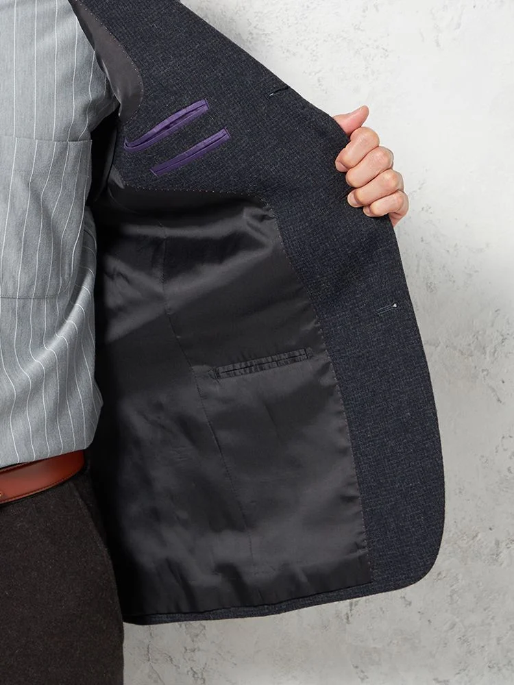 ジャケットの内側全面に裏地が付いている総裏仕様で、内部まで丁寧に仕上げられたアイテム。高級感とともに快適さも提供します。