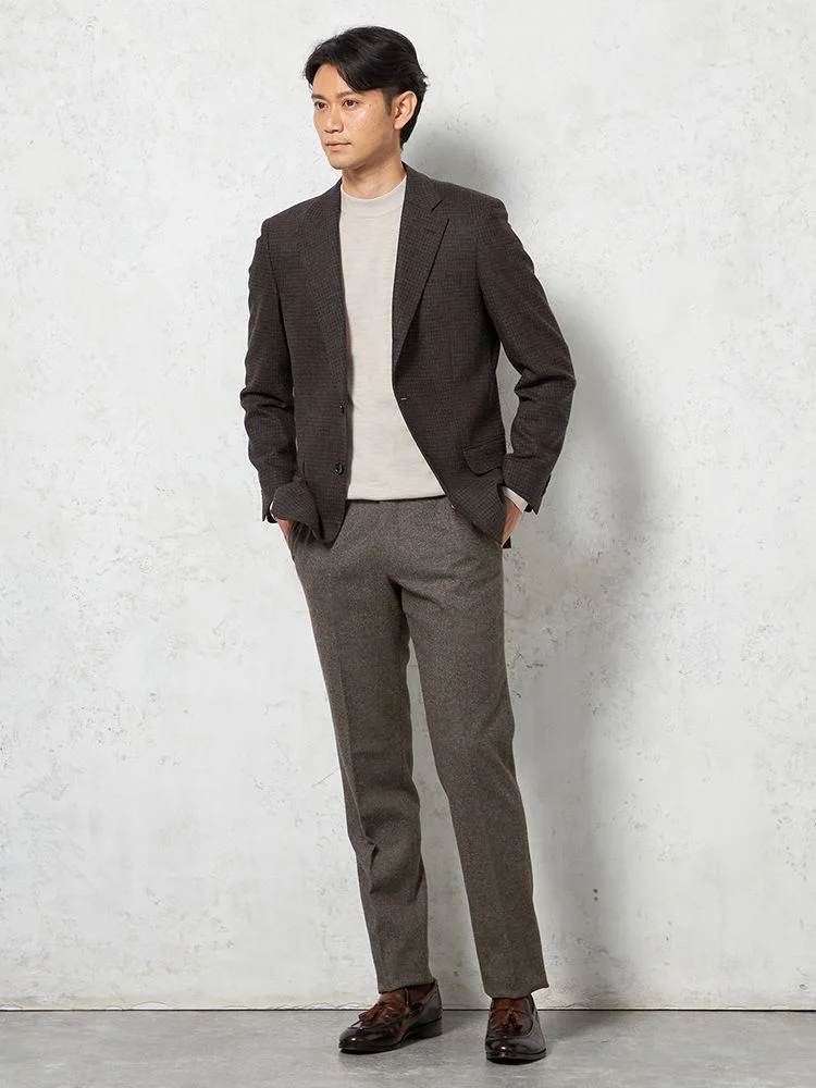 秋冬らしい落ち着きを備えたクラシックモデルのジャケット。