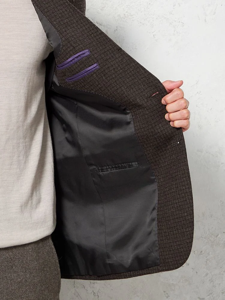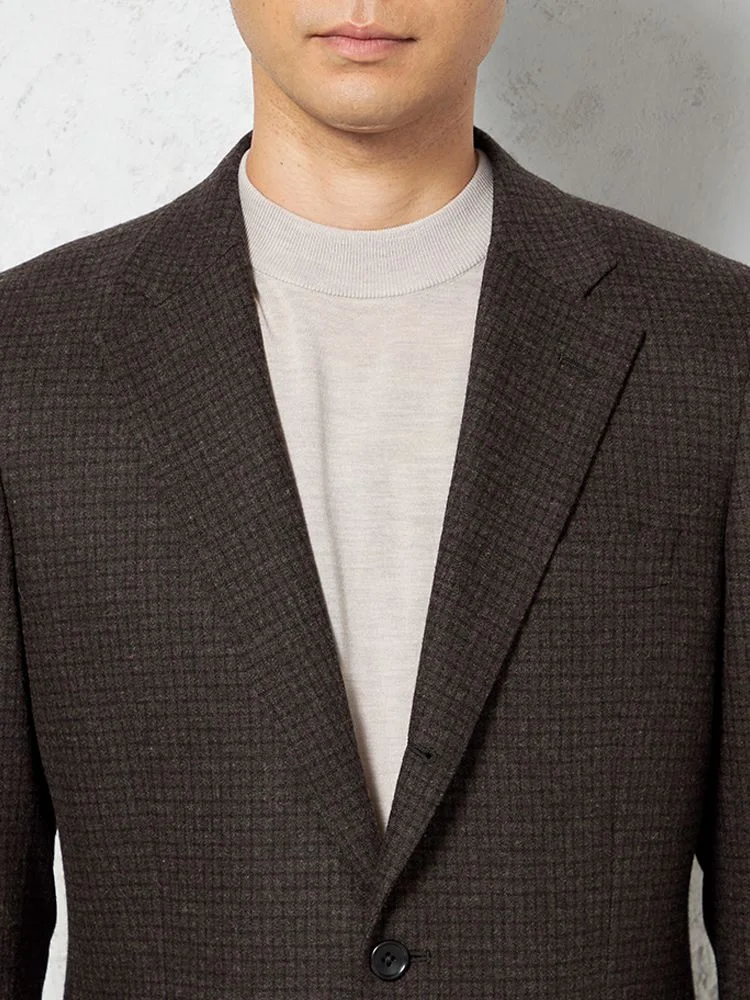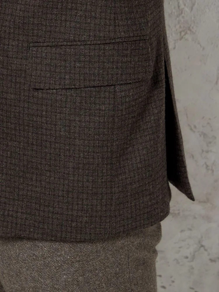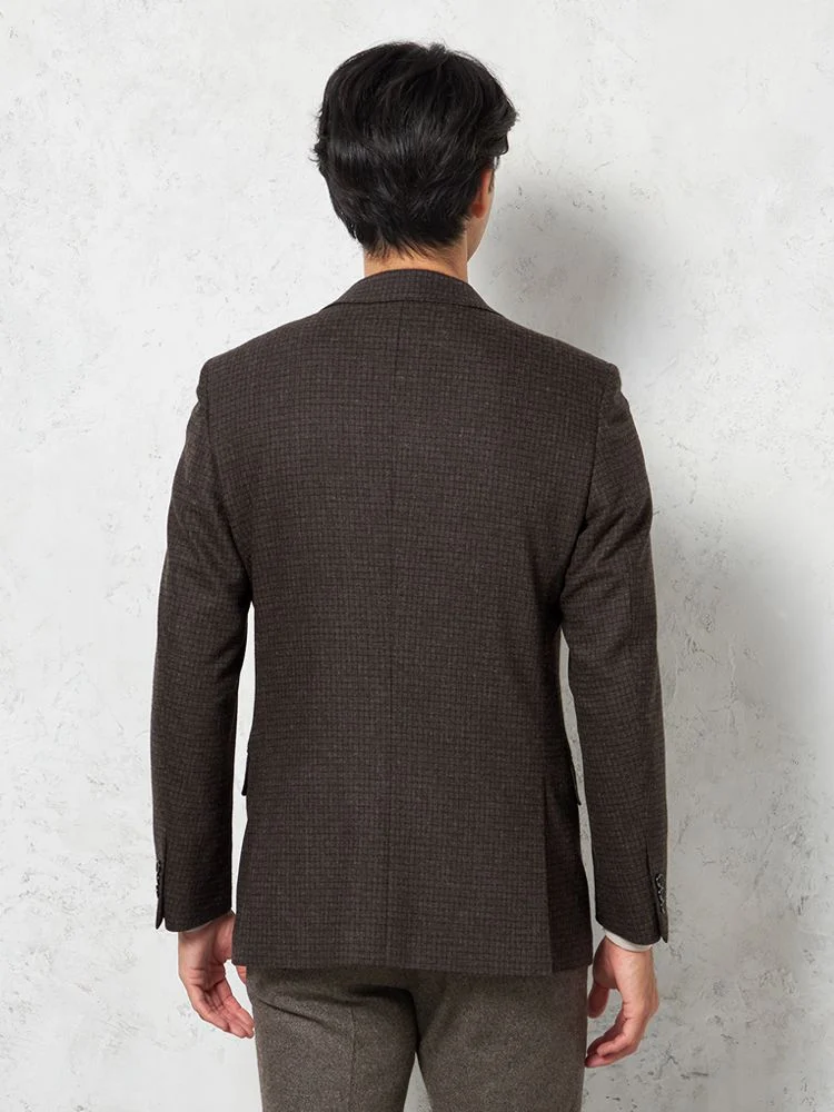【尾州サスティナブルウール】ジャケット 段返り3つボタン ライトツイードジャケット ガンクラブ リッケンバッカー 秋冬(ブラウン)