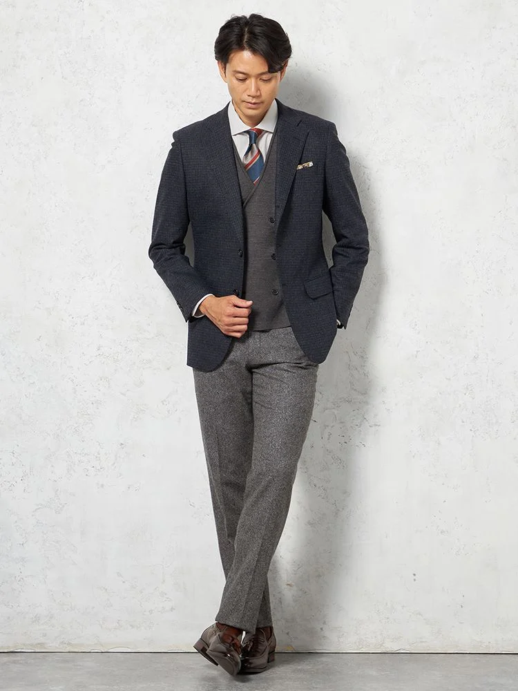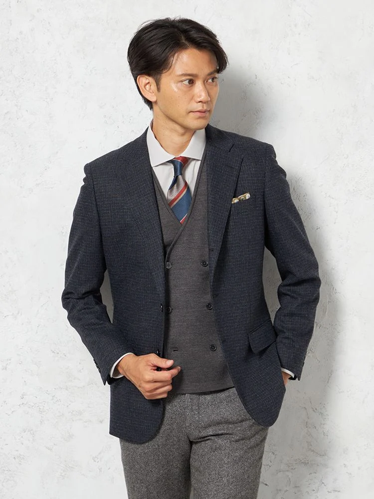 切り込みが2本のサイドベンツ仕様のアイテムです。クラシックでエレガントな印象を与えます。