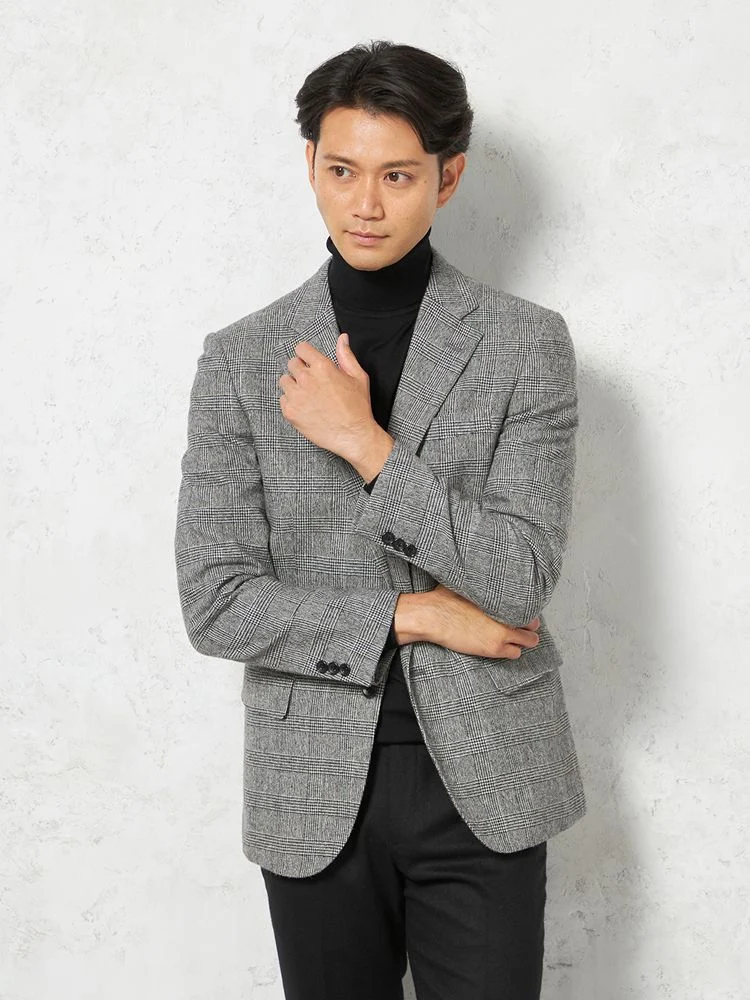【尾州サスティナブルウール】ジャケット段返り3つボタンライトツイードジャケットグレンチェックリッケンバッカー秋冬