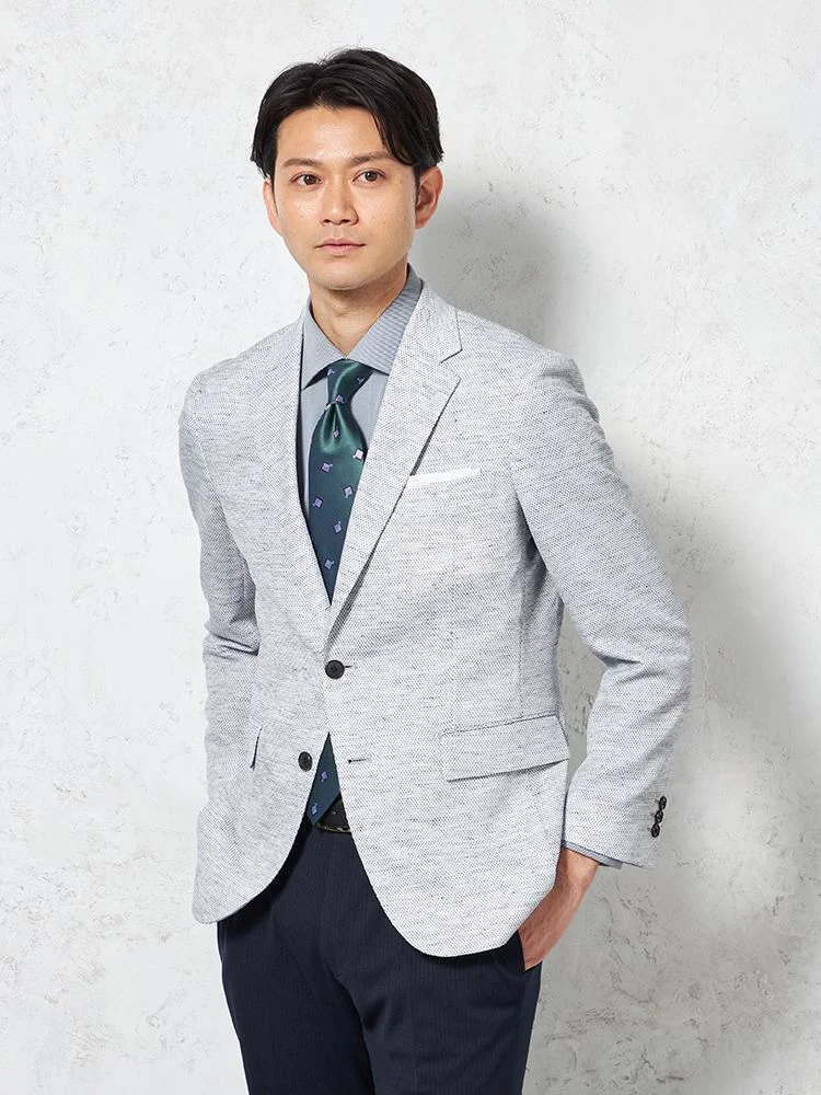 【i-Jacket-アイジャケット-】ジャケット2つボタン尾州ニット素材ウォッシャブルバーズアイリッケンバッカー