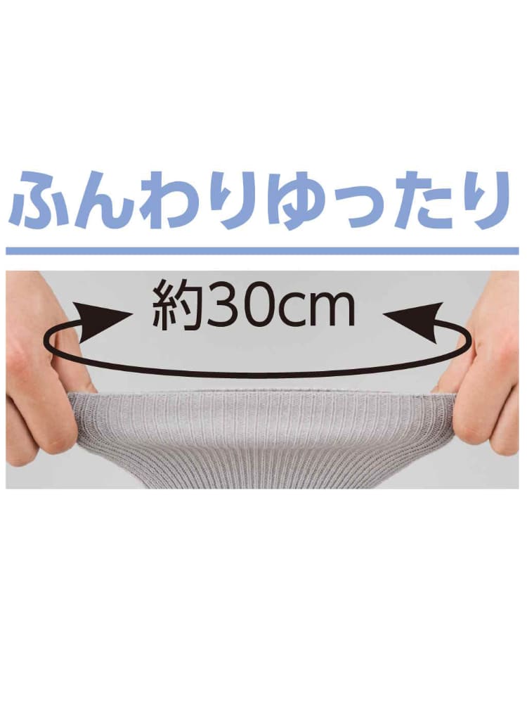 ちょっと大きめサイズ。肌に触れる部分は綿100%ではき心地爽快。足首周りはふんわりゆったり30cmです。