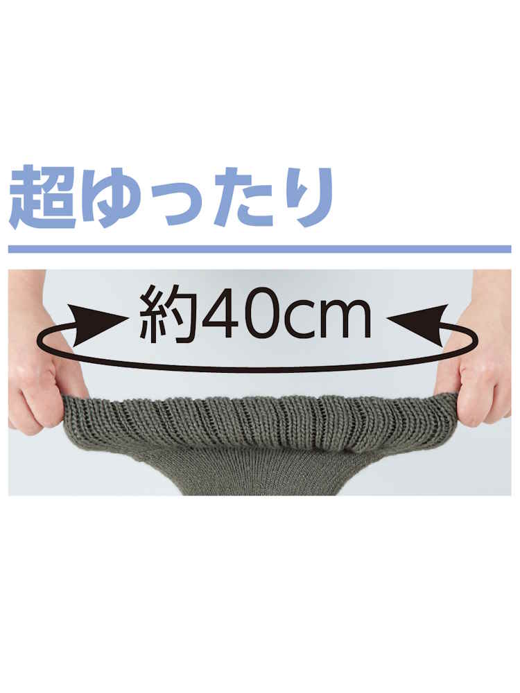 特徴的な「足首まわり超ゆったり設計(40cm)」は、圧迫感を最小限に抑えたデザイン。