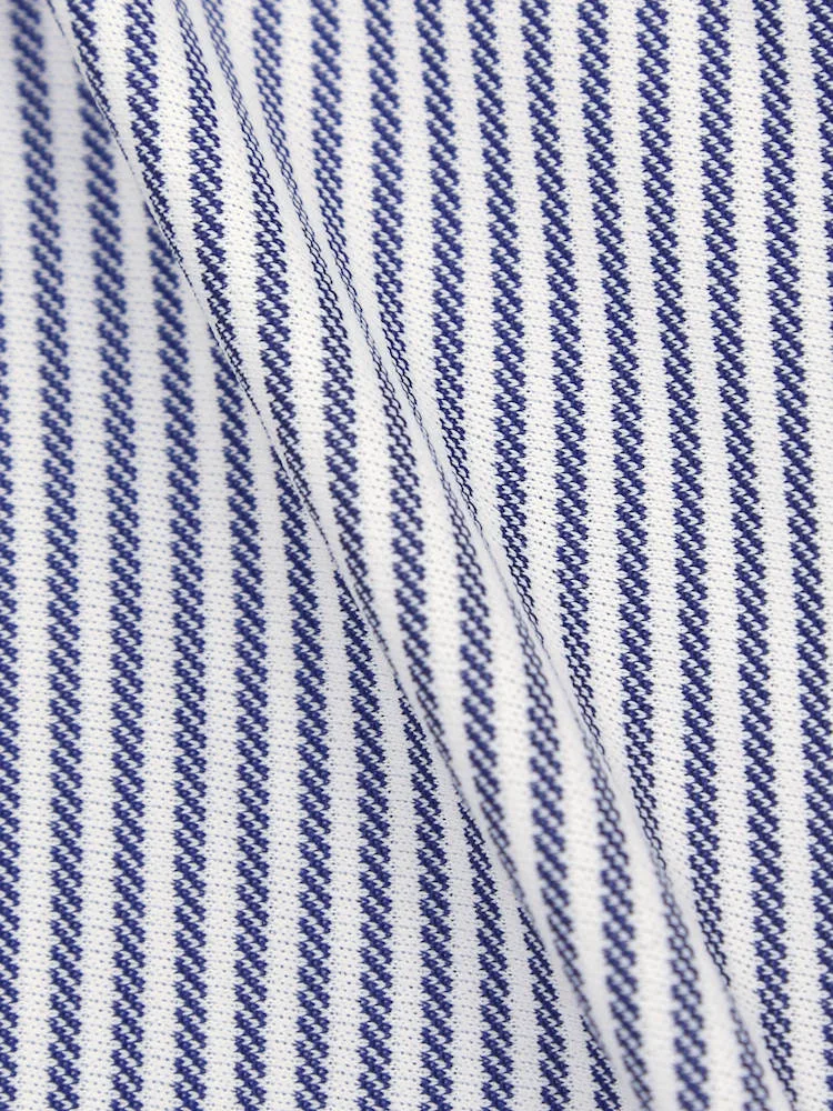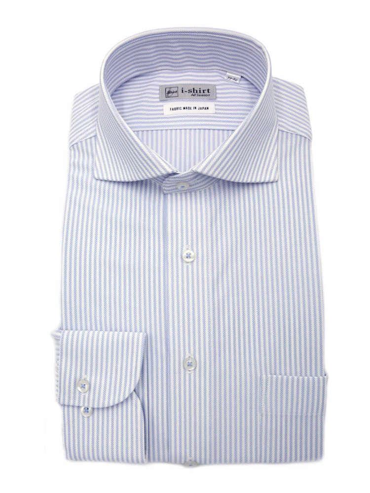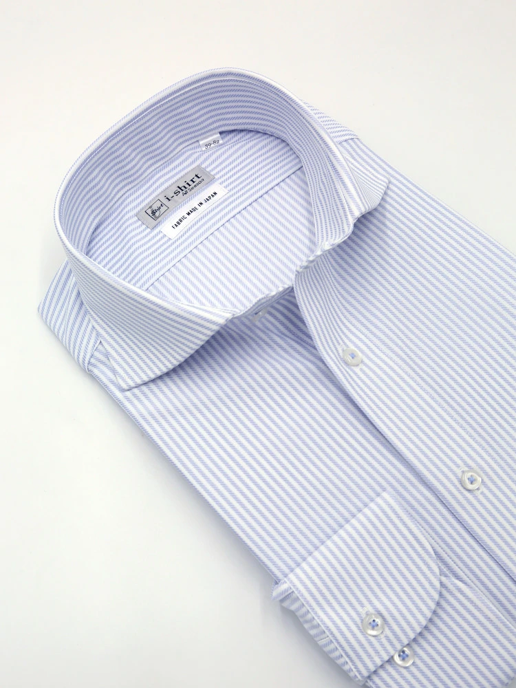 【完全ノーアイロン】長袖 アイシャツ カッタウェイ ストレッチ 吸水速乾 ストライプ ワイシャツ i-shirt 通年(サックス)