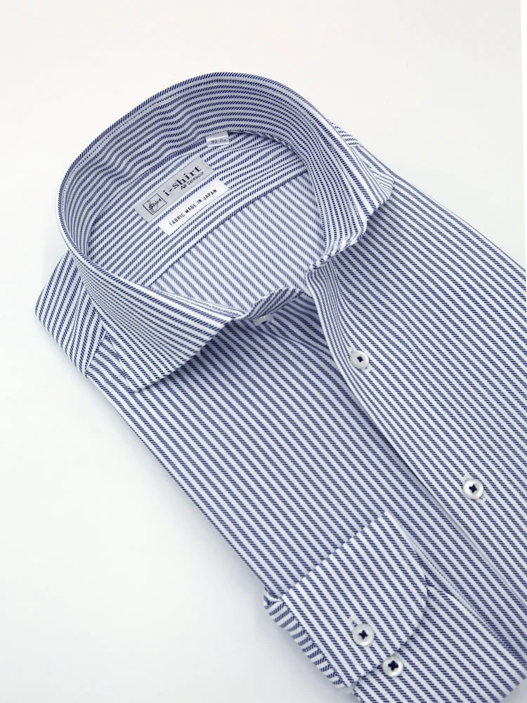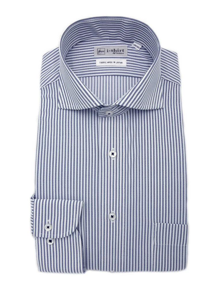 【完全ノーアイロン】長袖アイシャツセミワイドストレッチ吸水速乾ストライプワイシャツi-shirt通年