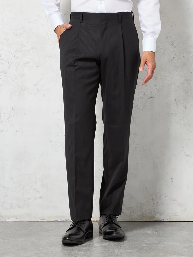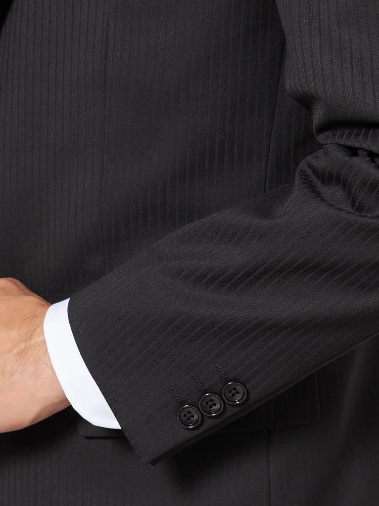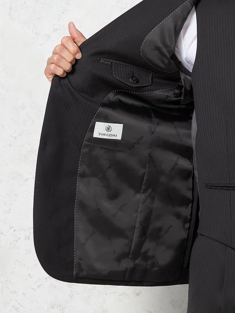 【光沢仕上げ】スリーピーススーツ 2つボタン ストレッチ【セレモニー】ブラック シャドウストライプ YUMI KATSURA 通年