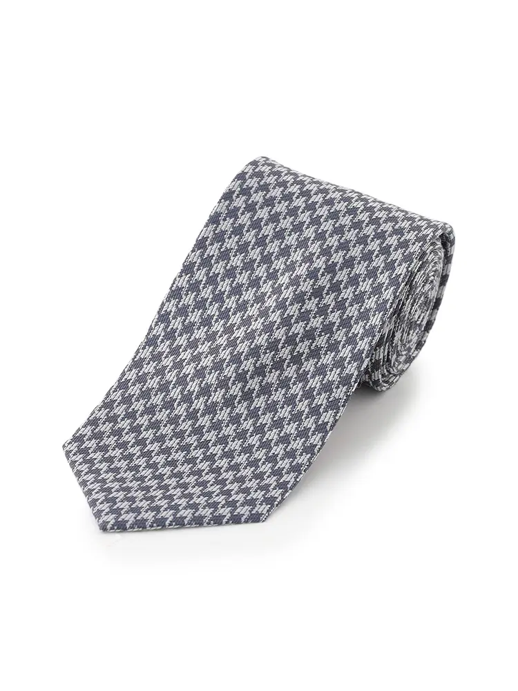 【シルク100%】ネクタイ レギュラー ブライダルテイスト 千鳥格子 ユミカツラ 通年(M.グレー)