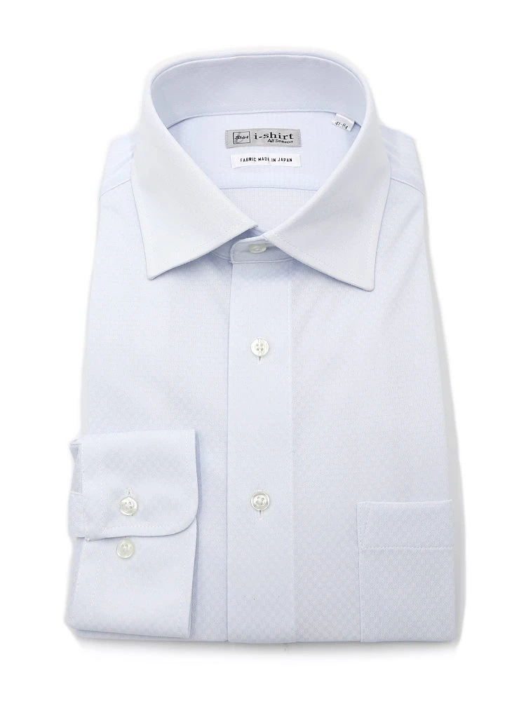 【完全ノーアイロン】アイシャツ セミワイド ストレッチ 吸汗速乾 織柄スクエア ワイシャツ i-shirt 通年(ホワイト)