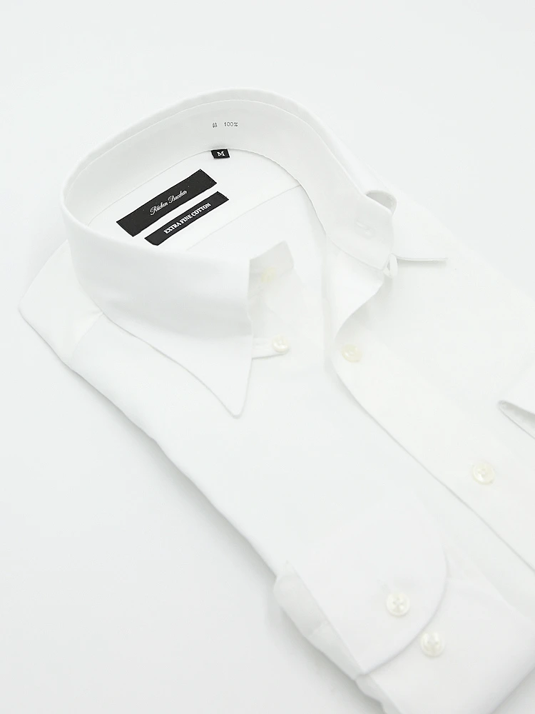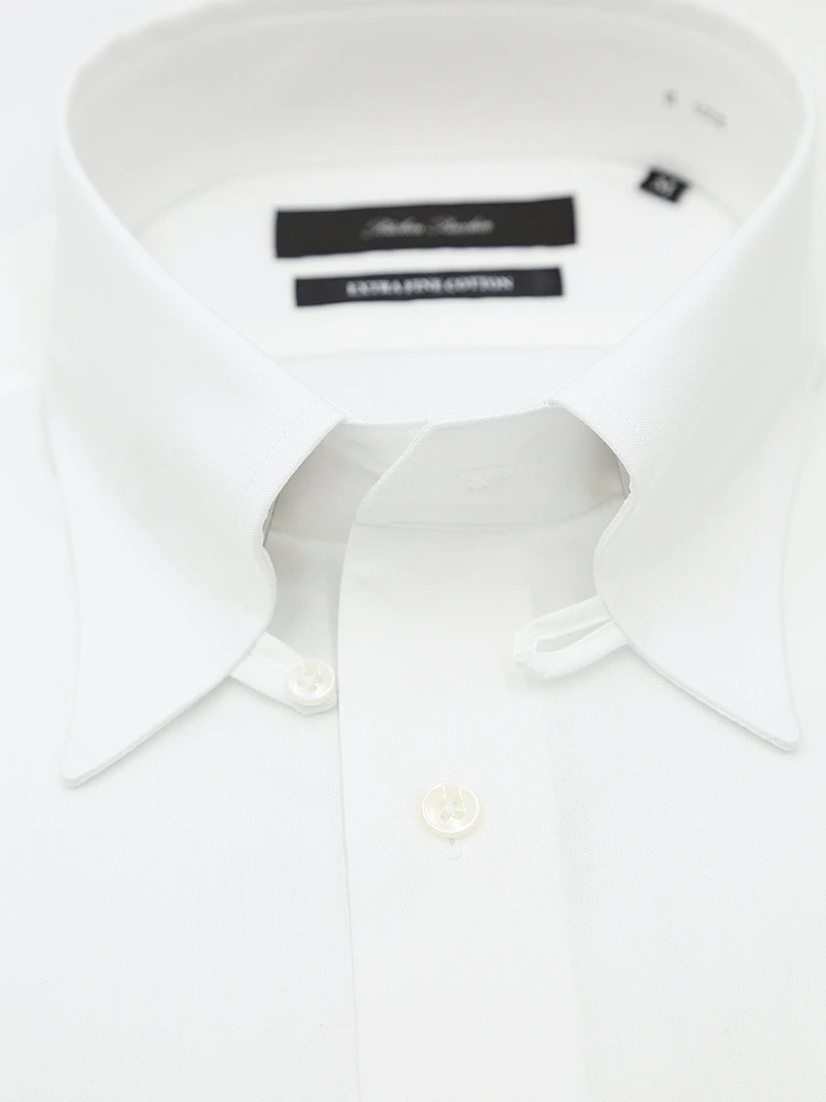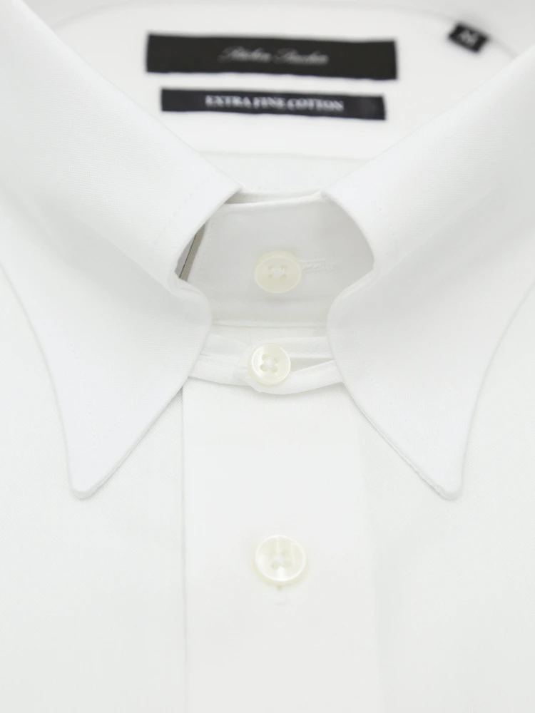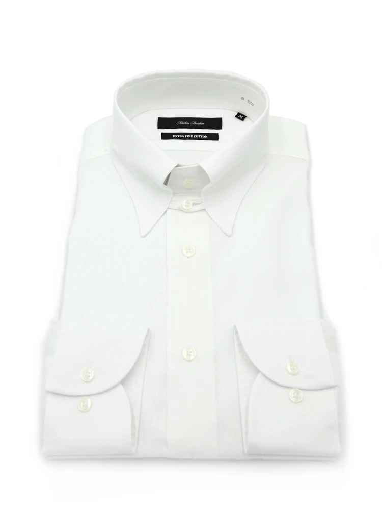 【綿100%】長袖ワイシャツ タブカラー 無地 リッケンバッカー 通年(ホワイト)