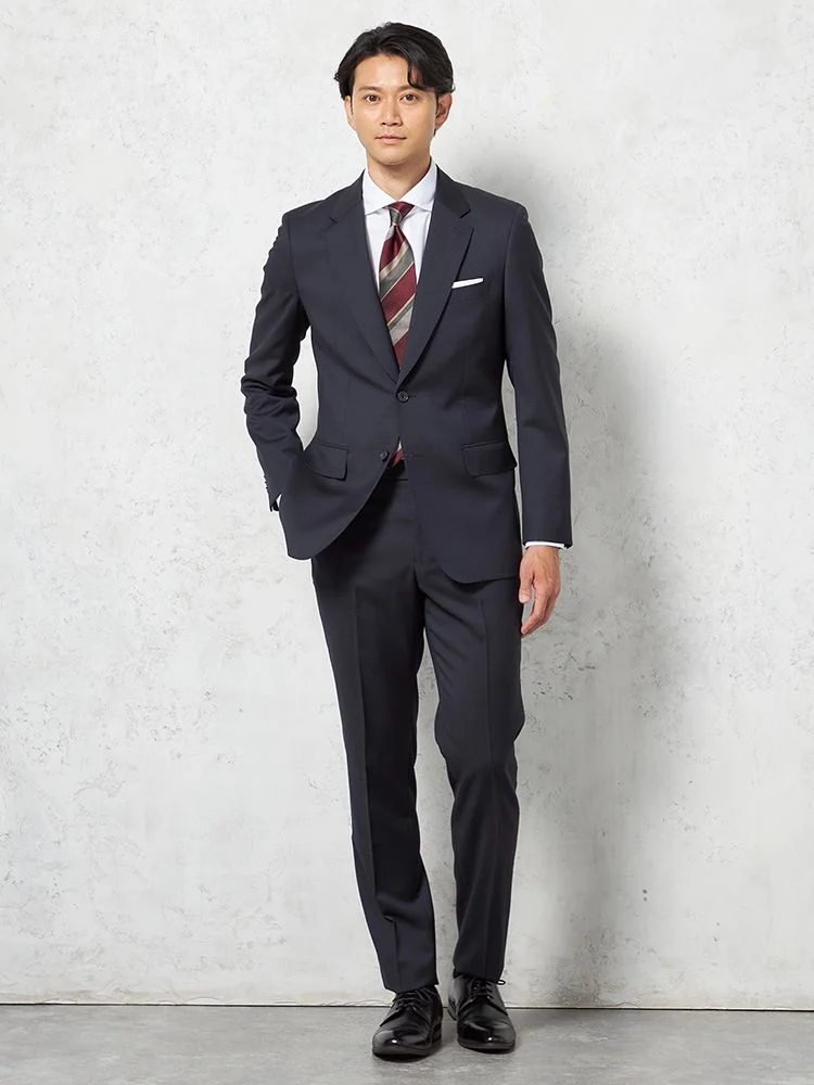【即納】スーツ2つボタン【WEB限定】上下ウォッシャブルネイビーストライプ