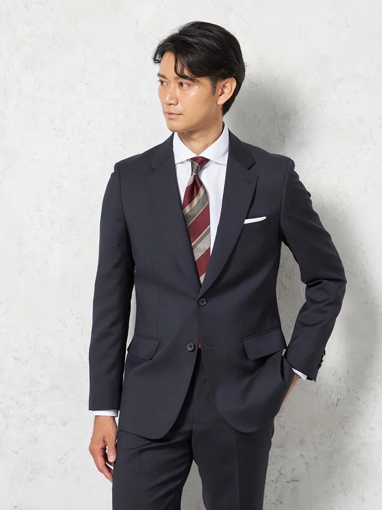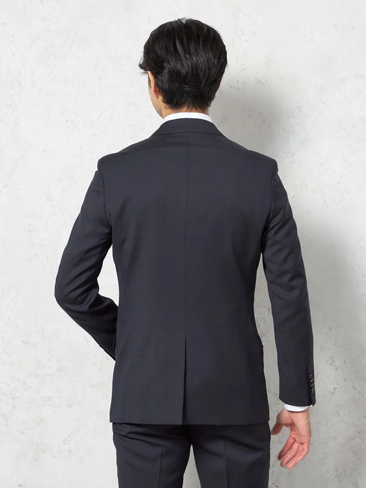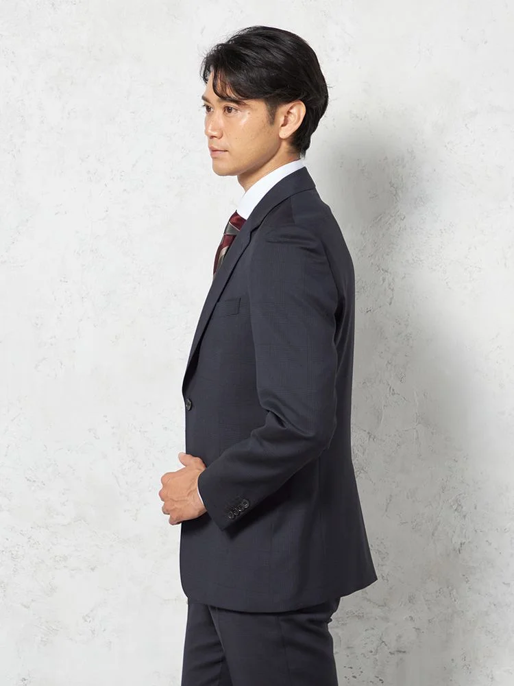 【即納】スーツ2つボタン【WEB限定】上下ウォッシャブルネイビーチェック