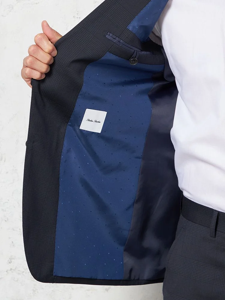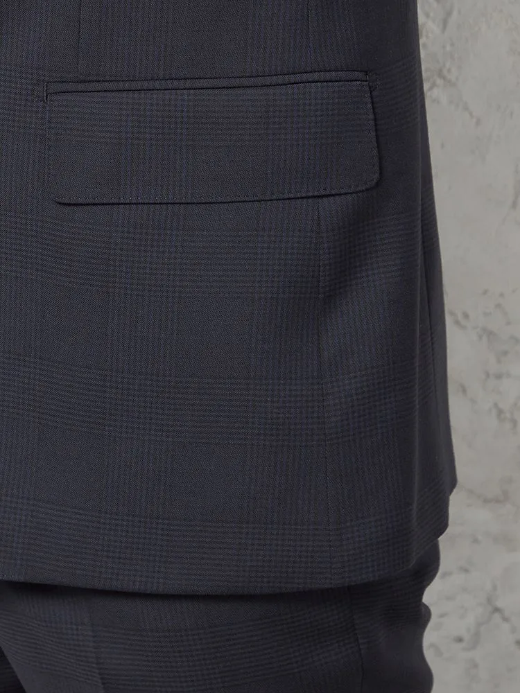 【ウール100%】スーツ2つボタンイタリアインポート素材ネイビーチェックリッケンバッカー秋冬