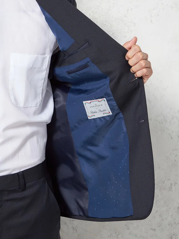 【ウール100%】スーツ 2つボタン ANGELICO-アンジェリコ- ネイビー チェック リッケンバッカー 通年