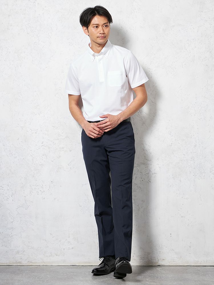 【吸汗速乾】半袖 ポロシャツ ボタンダウン アメリカンシーアイランドコットンドライ カジュアルインナー 無地 春夏(ホワイト)