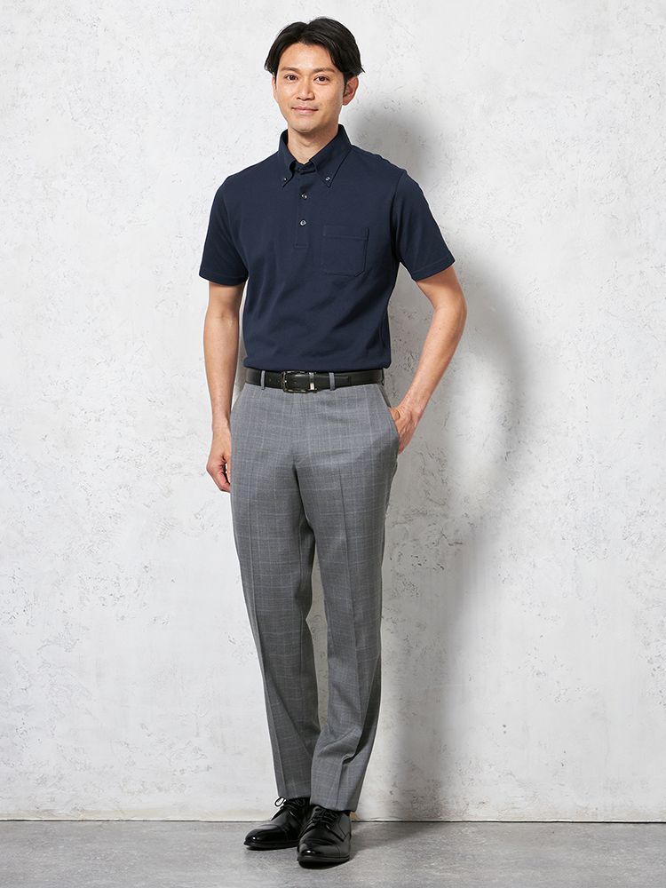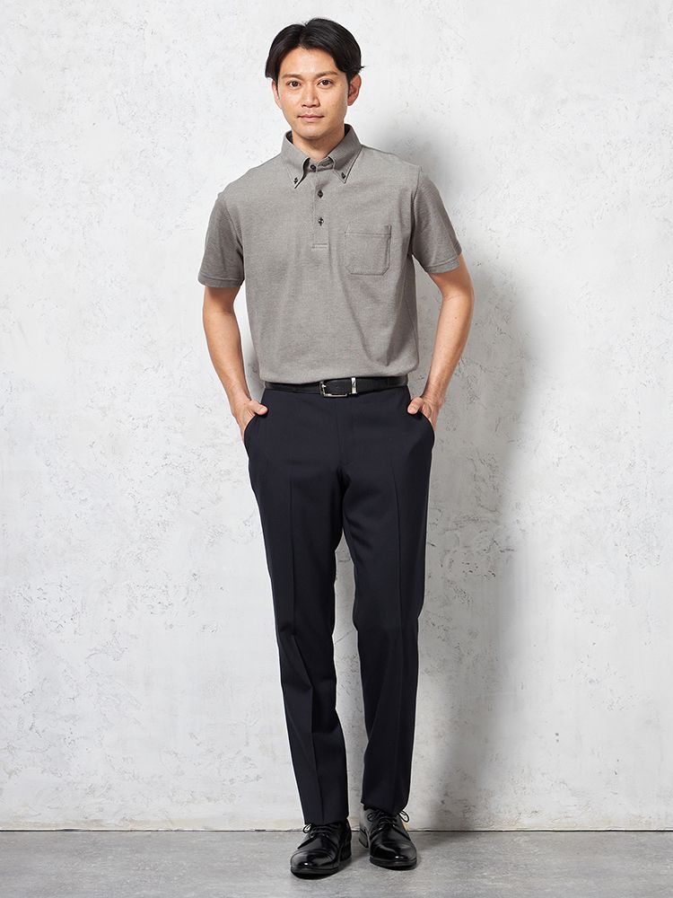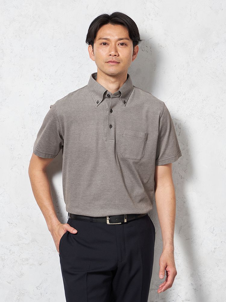 【吸汗速乾】半袖ポロシャツワイドカラービズポロ織柄無地カジュアルインナーTOKYORUN春夏