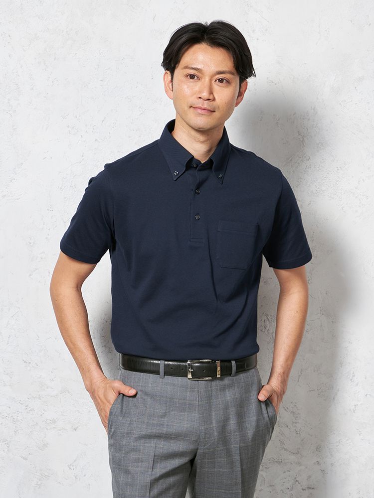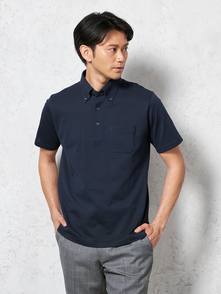 【吸汗速乾】半袖ポロシャツボタンダウンアメリカンシーアイランドコットンドライカジュアルインナー無地春夏