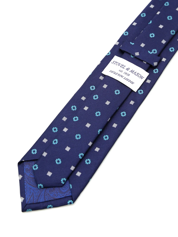 【シルク100%】ネクタイ レギュラー 日本製 小柄 STOVEL&MASON(ネイビー)