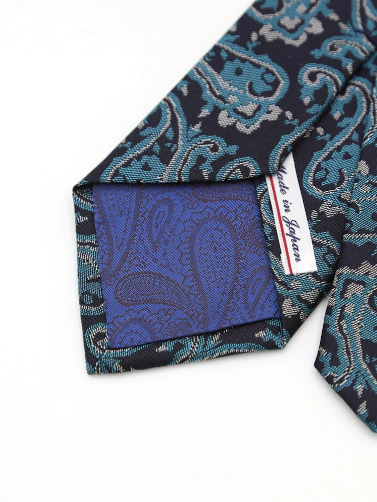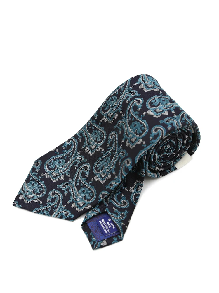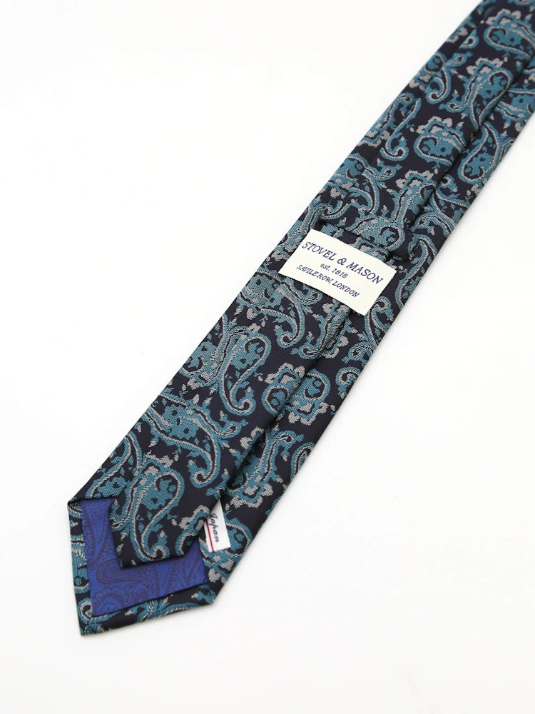 【シルク100%】ネクタイ レギュラー 日本製生地 ペイズリー STOVEL&MASON(ブルー)