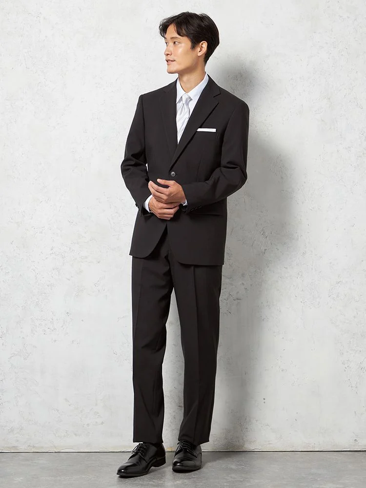 [礼服]【WEB限定】フォーマル2つボタン上下ウォッシャブルウエストアジャスター仕様黒無地通年
