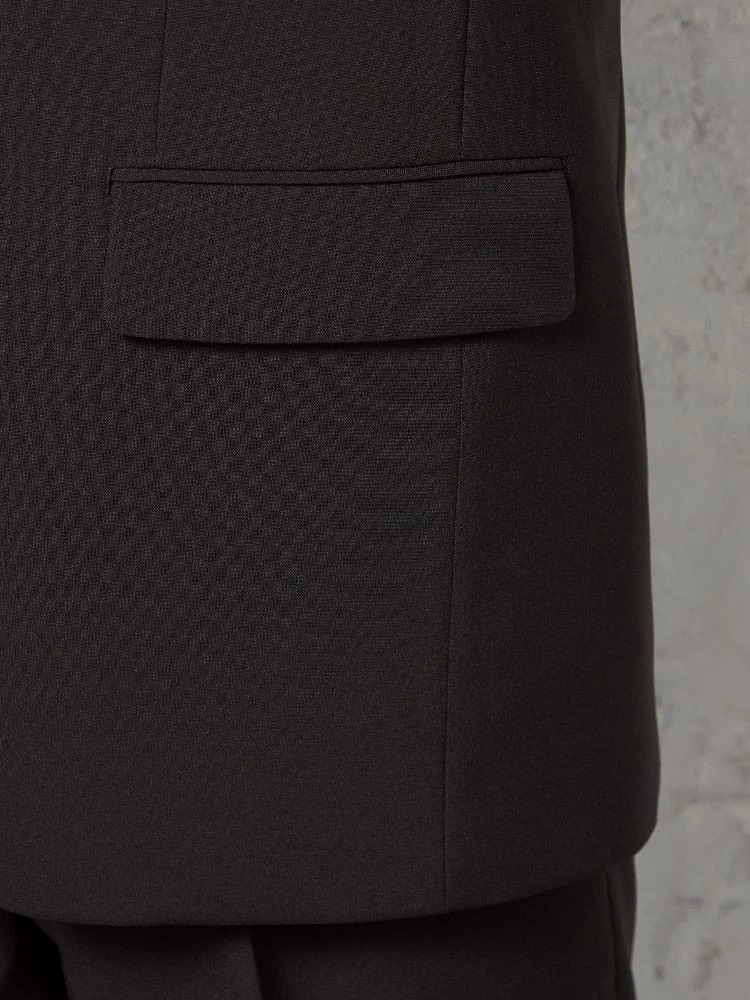 切り込みが1本のセンターベントデザインです。細身でスッキリとしたシルエットが特徴で、快適な着心地を提供します