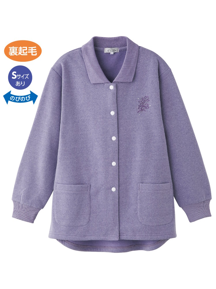 レディース 裏起毛スナップ釦ポロカーディ/敬老の日/ギフト/プレゼント 【CF】(パープル)