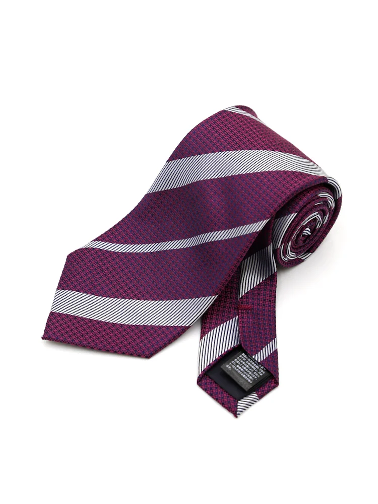 【シルク100%】ネクタイ レギュラー ストライプ リッケンバッカー(ワイン)