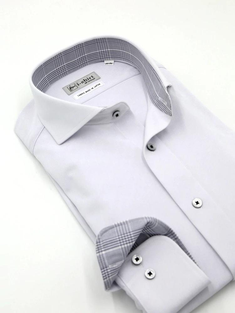 【ハイブリッドアイシャツ】長袖ワイシャツカッタウェイ綿混素材形態安定織柄無地通年