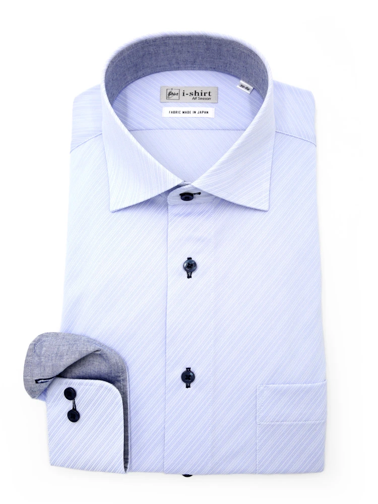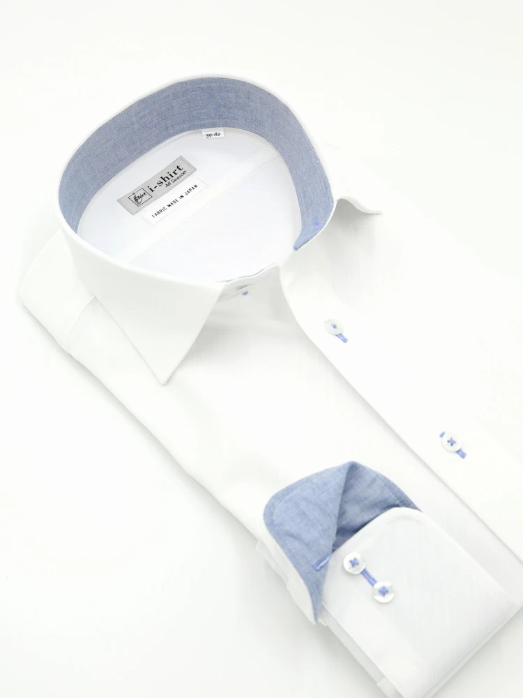 • ホワイト 【完全ノーアイロン】長袖 アイシャツ セミワイド 吸水速乾 ストレッチ ツイル 織柄無地 ワイシャツ i-shirt 通年 1185769549