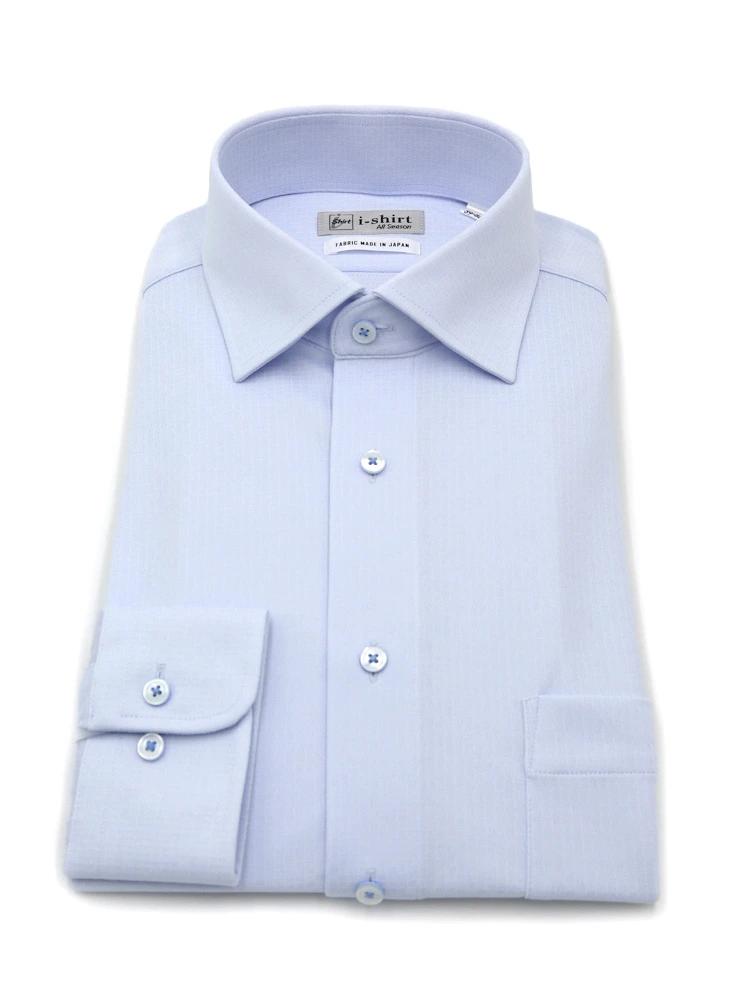 【完全ノーアイロン】長袖アイシャツセミワイドストレッチ吸汗速乾ツイル織柄無地ワイシャツi-shirt通年