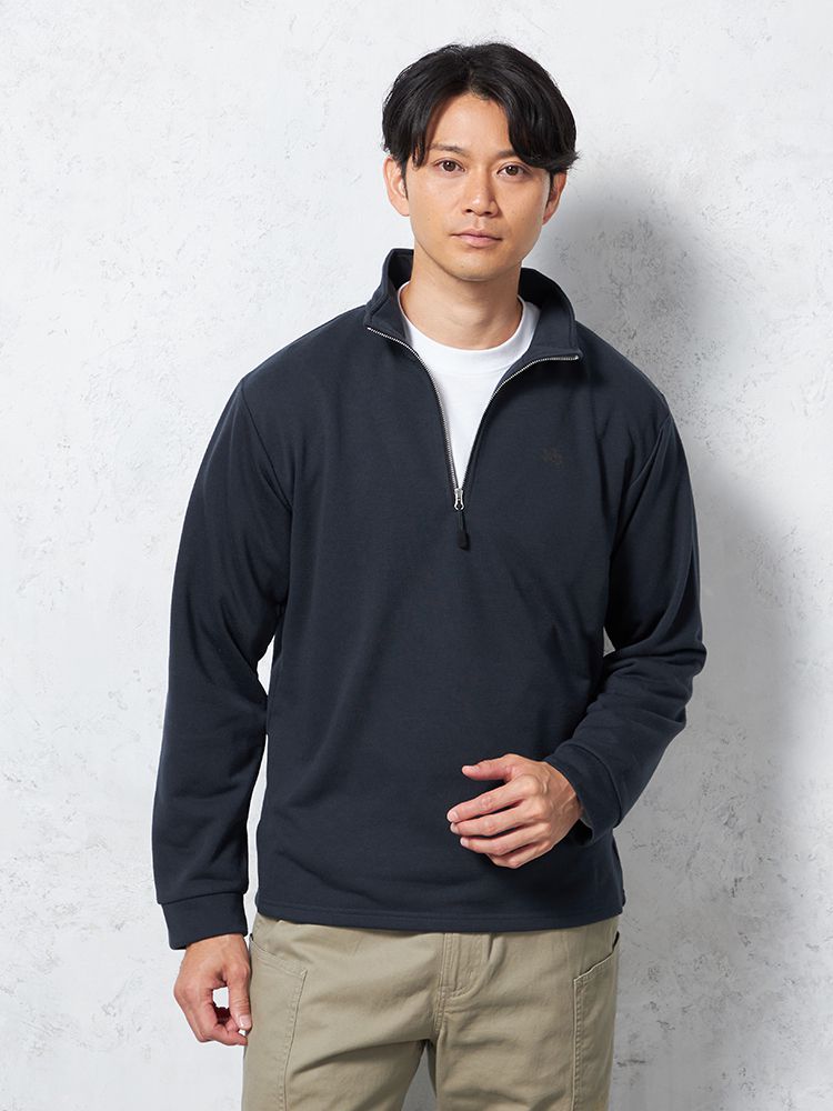 【LOGOS-ロゴス-】 裏毛ハーフジップトレーナー 無地 カジュアルインナー(ネイビー)