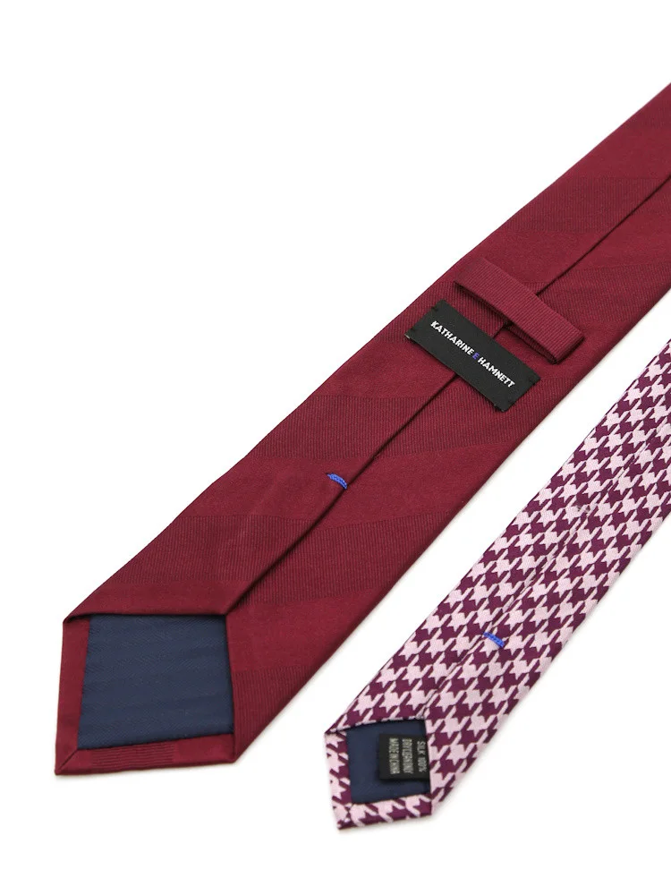 【KATHARINE E HAMNETT-キャサリン・イー・ハムネット-】ネクタイ チェンジタイ シルク100% ハウンドトゥースクレリックタイ 千鳥格子(ワイン)