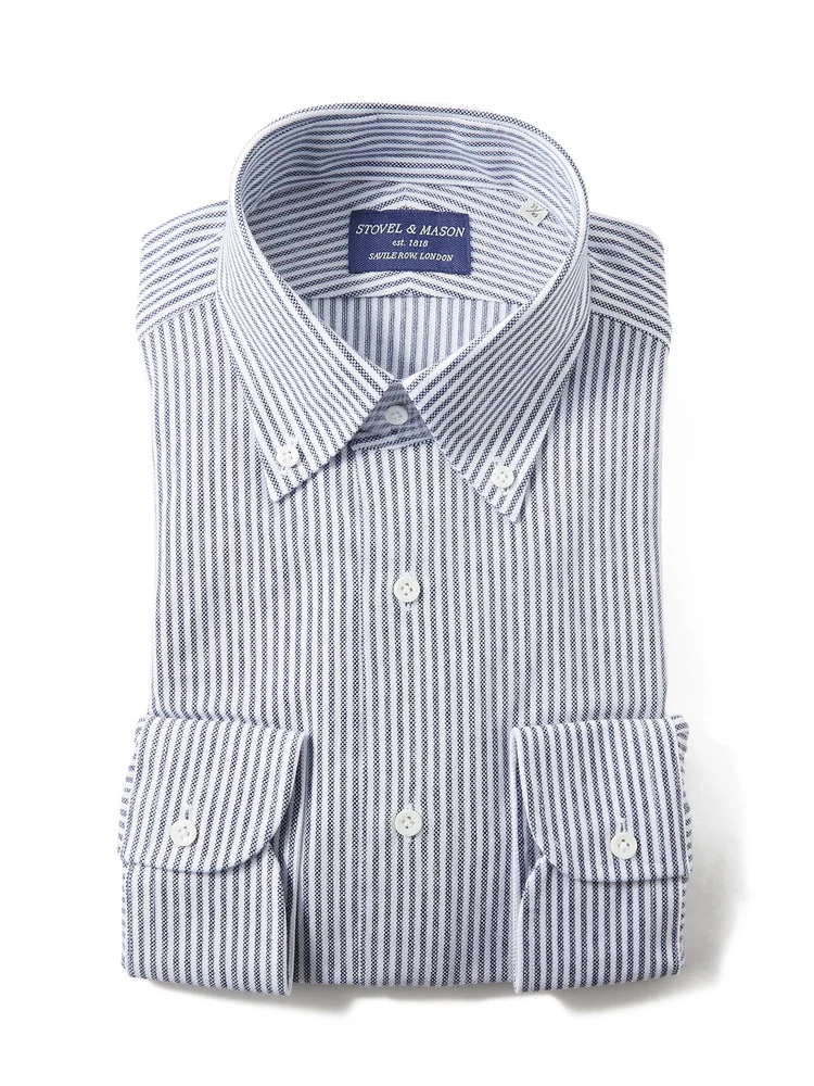 【形態安定】長袖 ワイシャツ 綿100% ボタンダウン ストライプ STOVEL&MASON 通年
