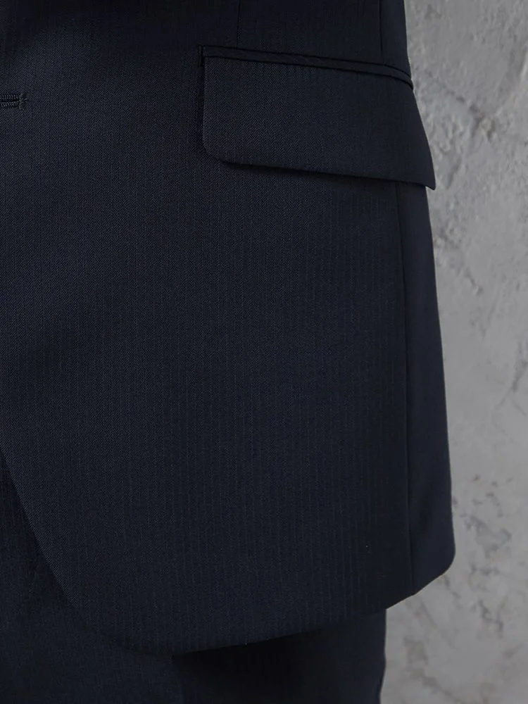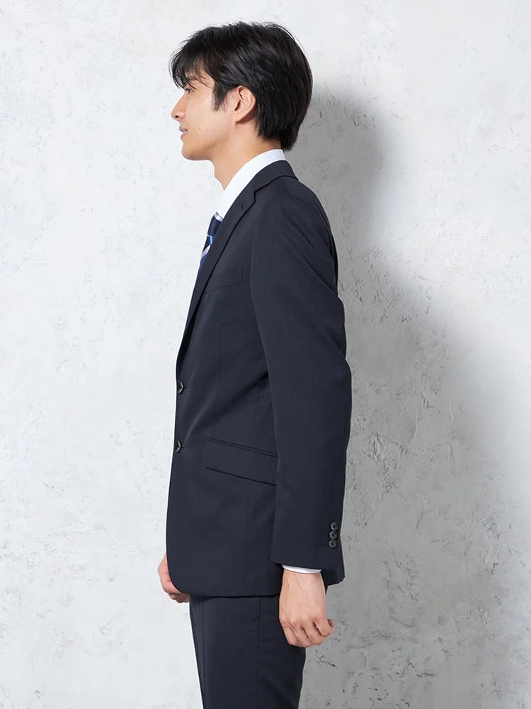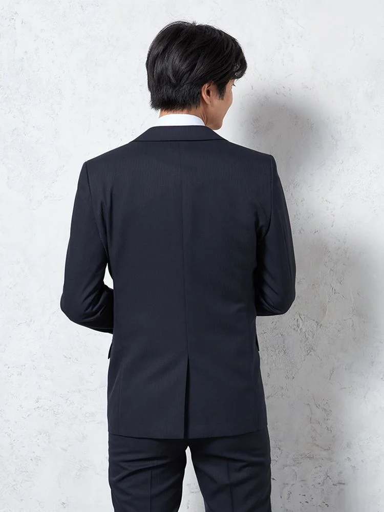 切り込みが1本のセンターベントデザインです。細身でスッキリとしたシルエットが特徴で、快適な着心地を提供します