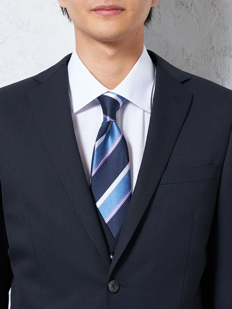 ジャケット、パンツ、ベストの3点セットで、スーツ全体を簡単にコーディネートできます。ビジネスやフォーマルな場面に最適です。