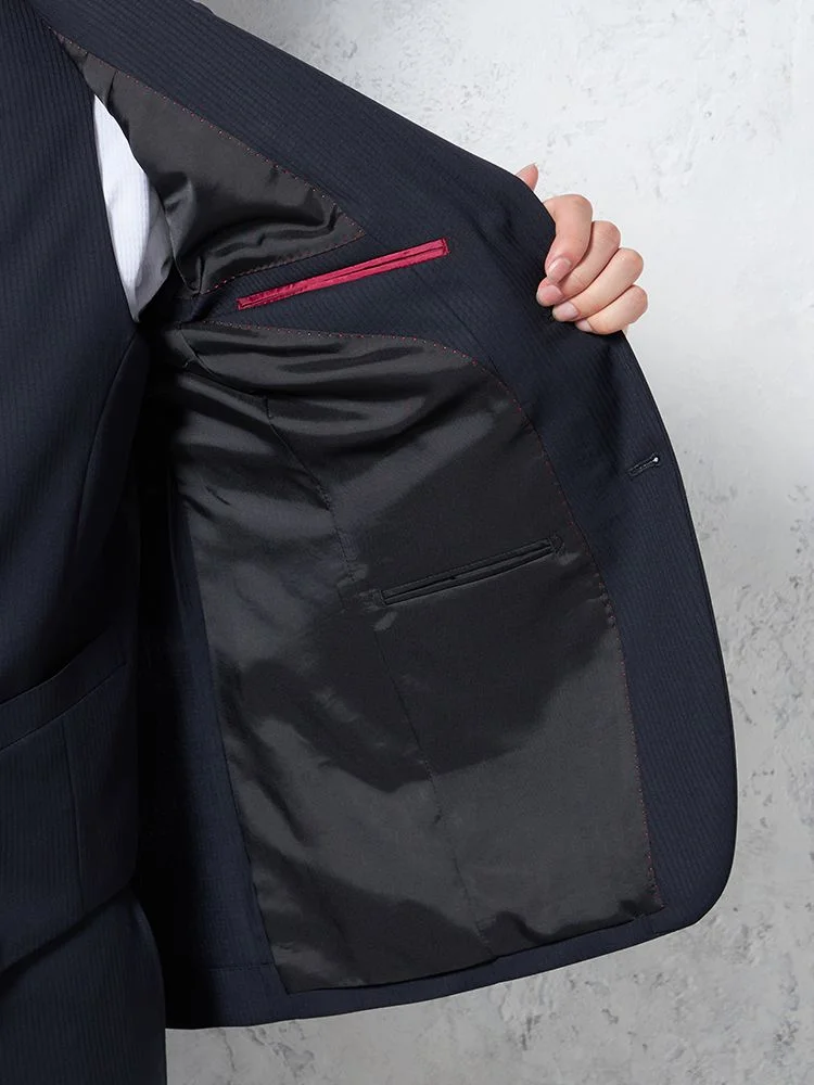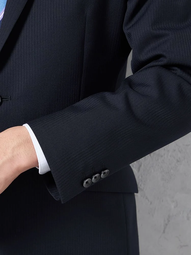 【パンツウォッシャブル】スリーピーススーツ 2つボタン ウール混素材 ストライプ nero