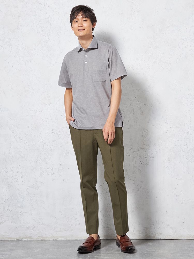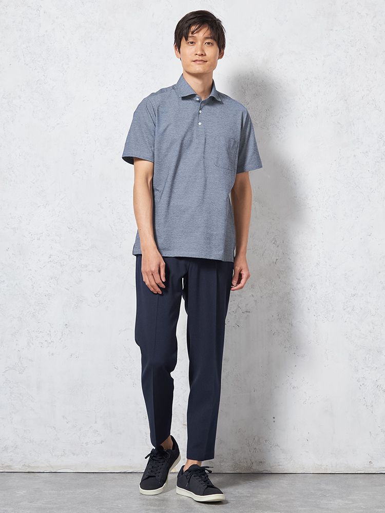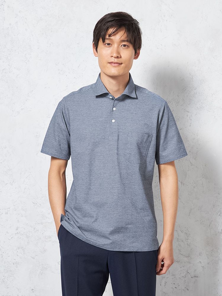 クールビズにおすすめのシンプルなワイドカラーポロシャツです。