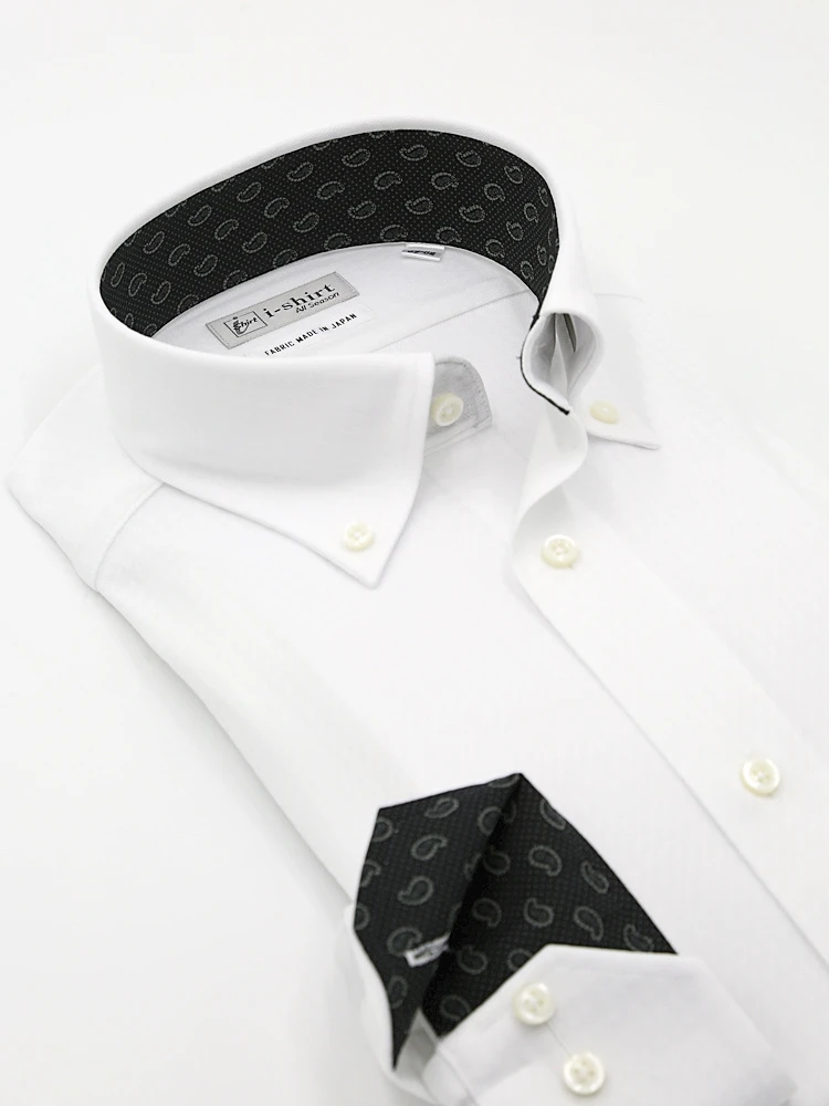 【形態安定】アイシャツ長袖ワイシャツボタンダウン織柄無地i-shirt通年