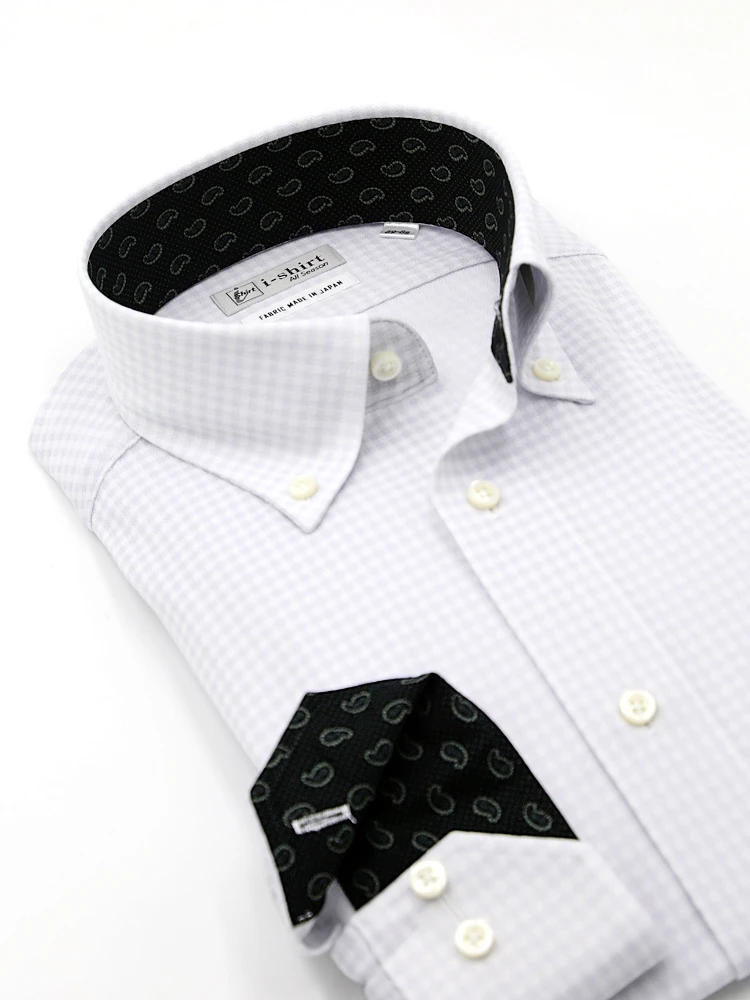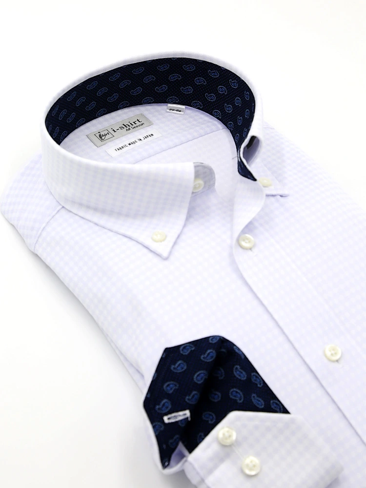 【即納】WEB限定【完全ノーアイロン】長袖アイシャツボタンダウンストレッチマイクロロンビック柄i-shirt通年