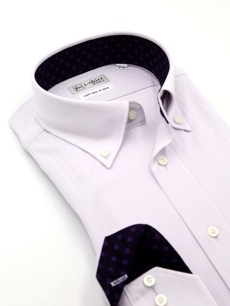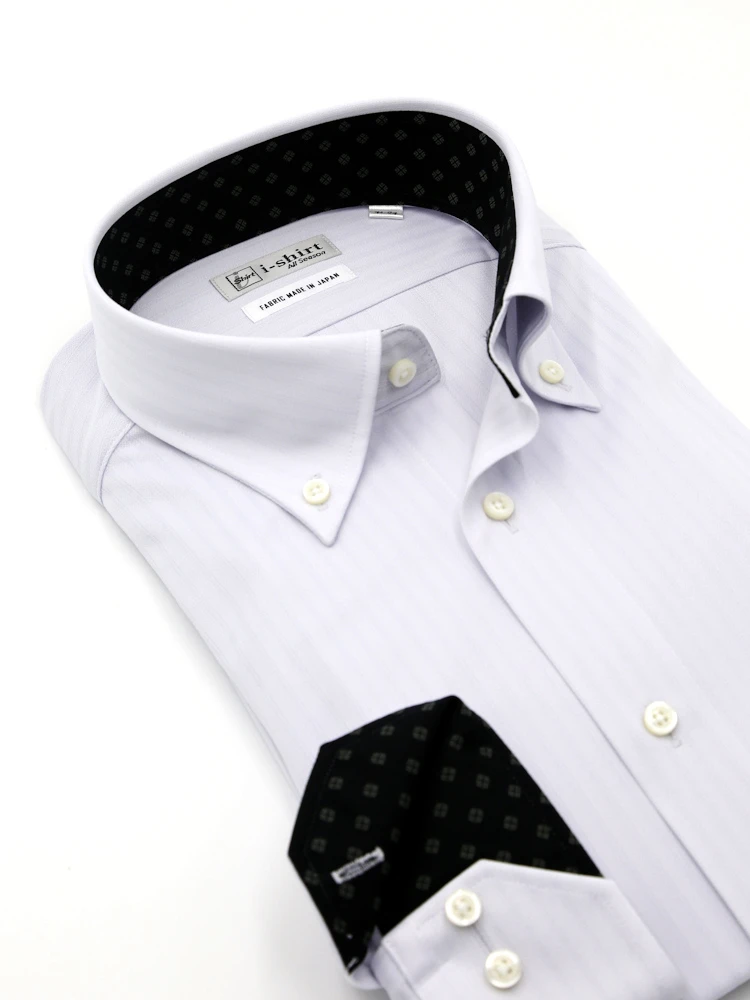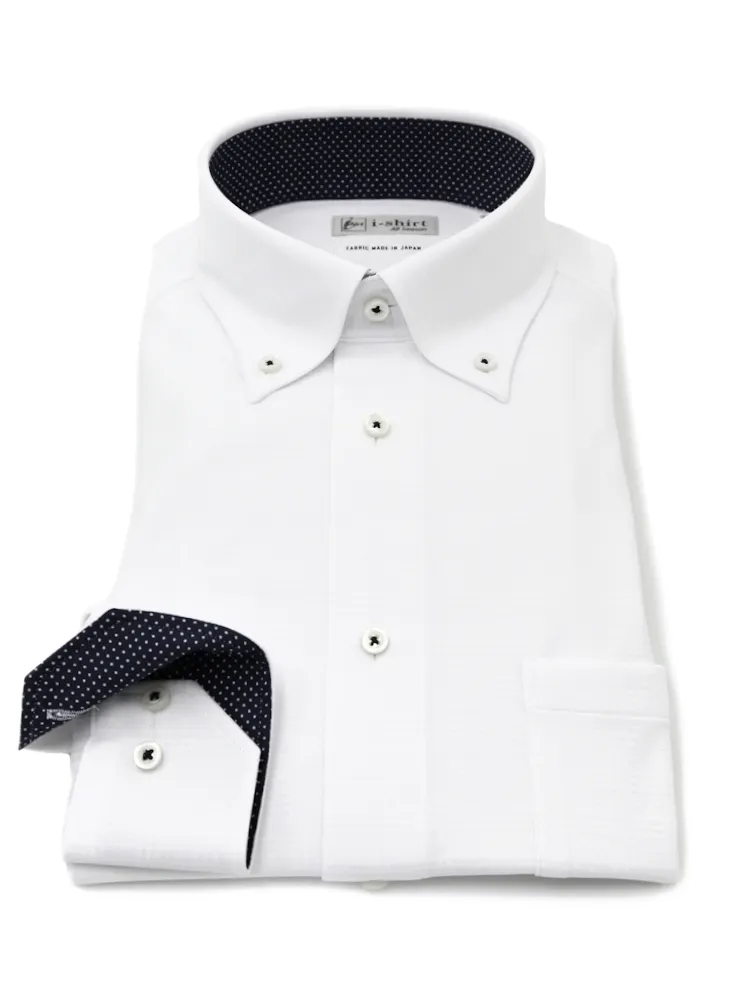 【形態安定】アイシャツ長袖ワイシャツボタンダウン織柄無地i-shirt通年