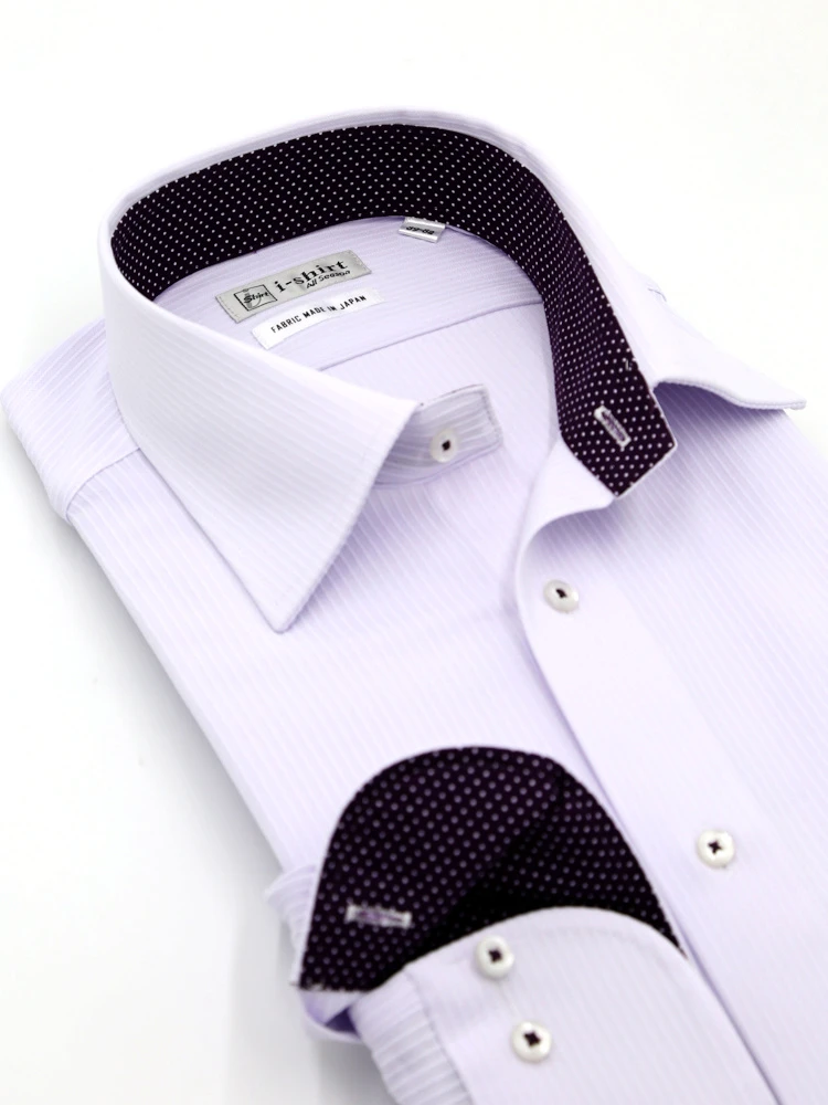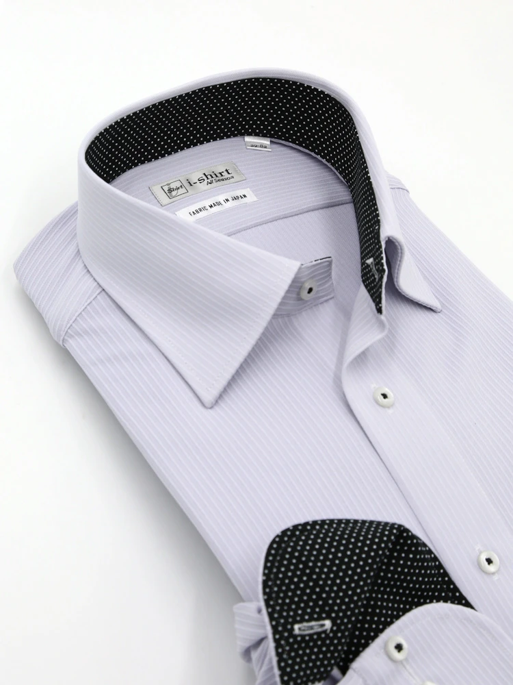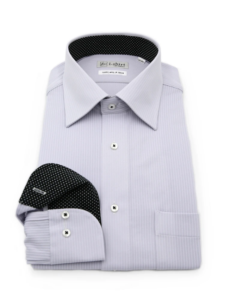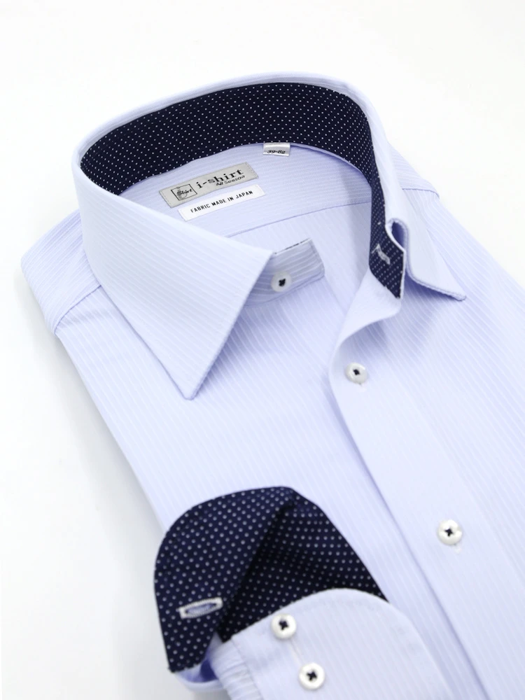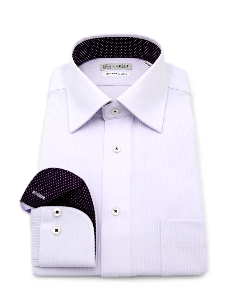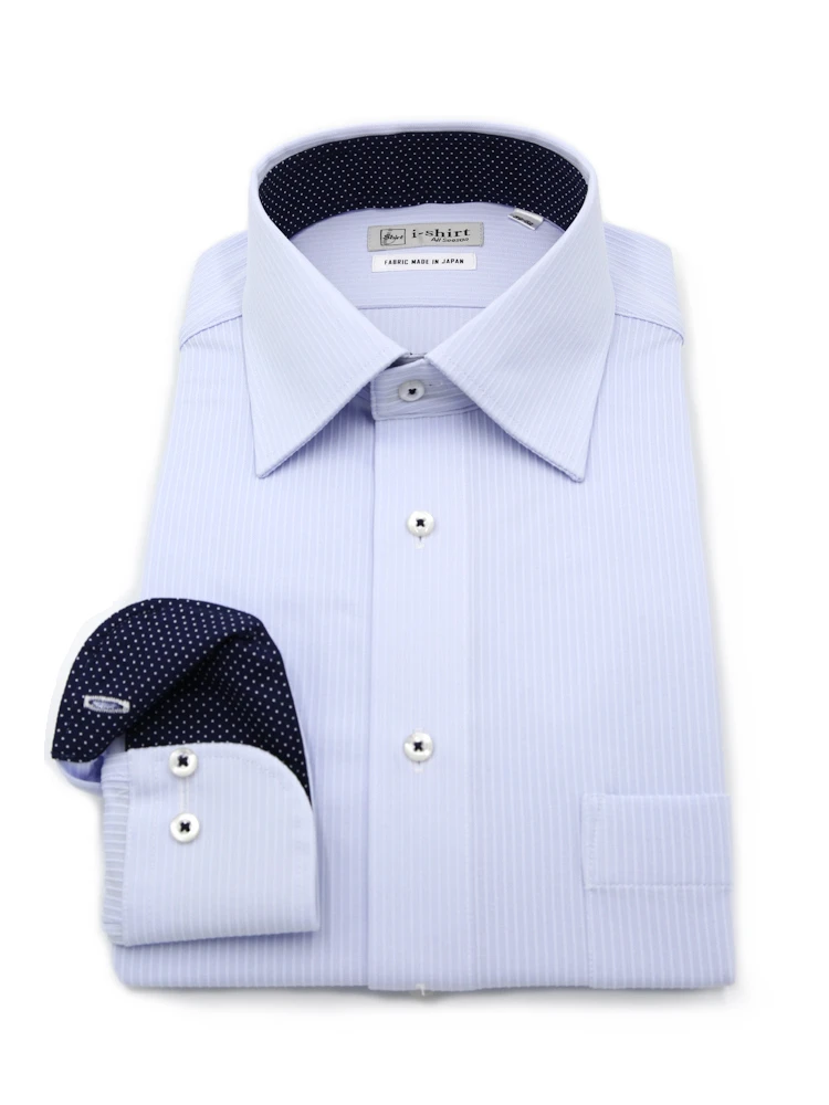【完全ノーアイロン】長袖アイシャツセミワイドストライプストレッチ吸汗速乾ワイシャツi-shirt通年